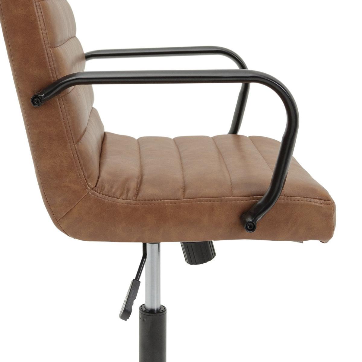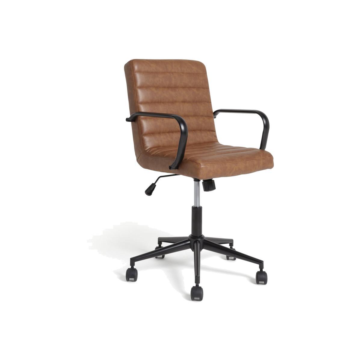 The Habitat Avlar chair means business. Its faux leather in a sleek tan tone with quilted finish will look the part in any home office. The metal armrests give the user a supportive sit. Set your preferred height for maximum productivity. With gas lift and tilt action, why not take this stunning swivel chair for a spin? Home office sophistication.