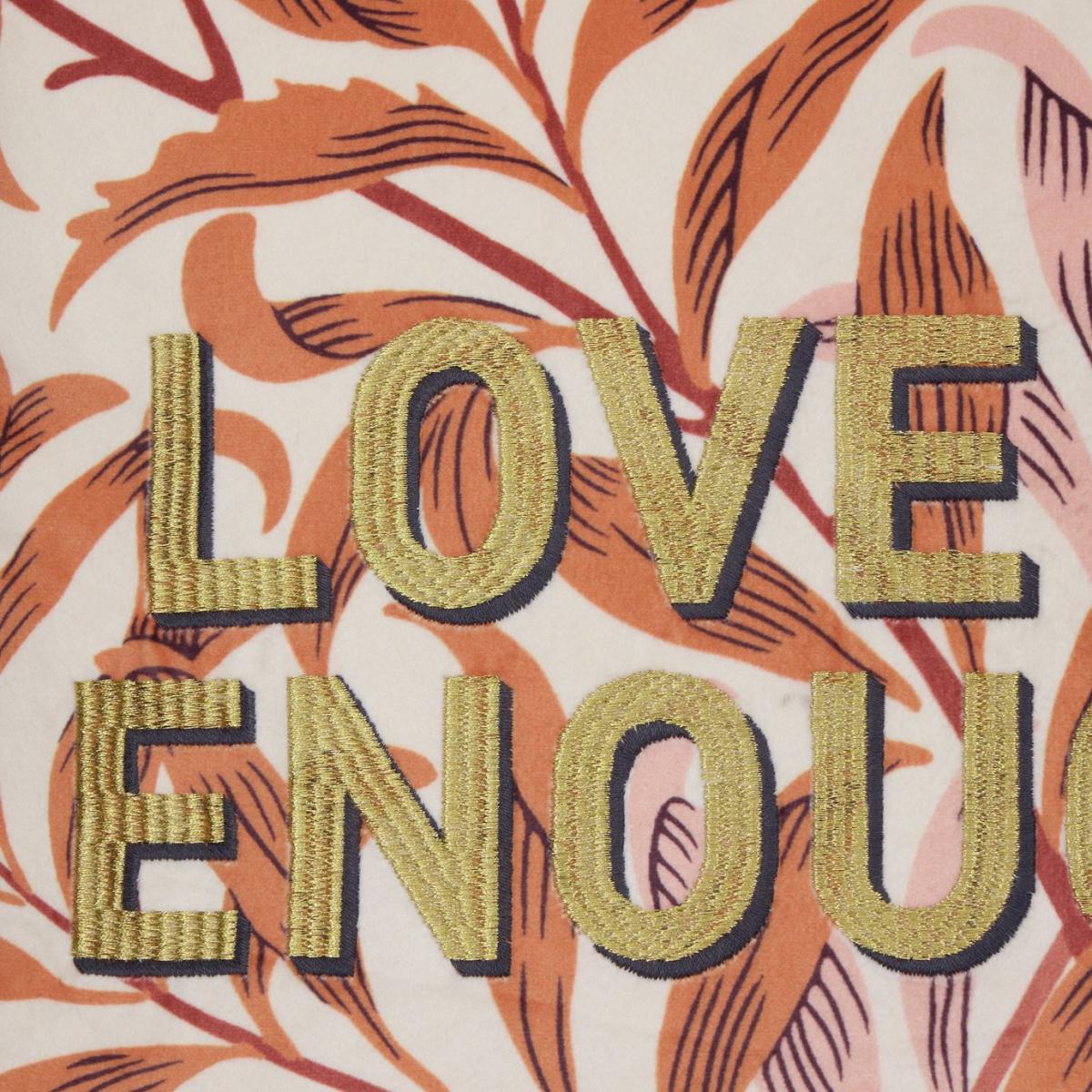 I love this cushion for its versatility and subtle sophistication. The "Love is Enough" design pairs well with both traditional and contemporary interiors, especially those that lean towards warm, earthy tones or botanical themes. It works particularly well as an accent piece on a neutral sofa or armchair, introducing a touch of personality without overwhelming the space. Practical styling tips include layering it with textured fabrics or mixing with other cushions in complementary colours and patterns to create a curated, inviting look. Its understated yet meaningful message makes it a charming addition that can effortlessly uplift the overall feel of a room.