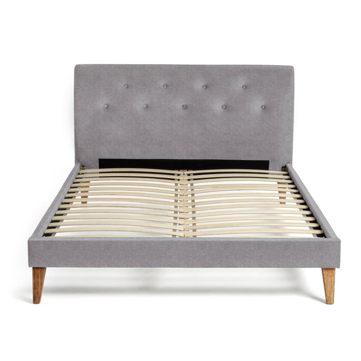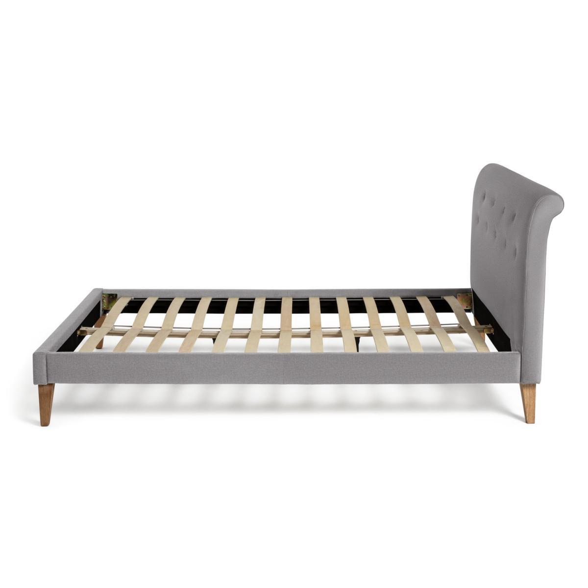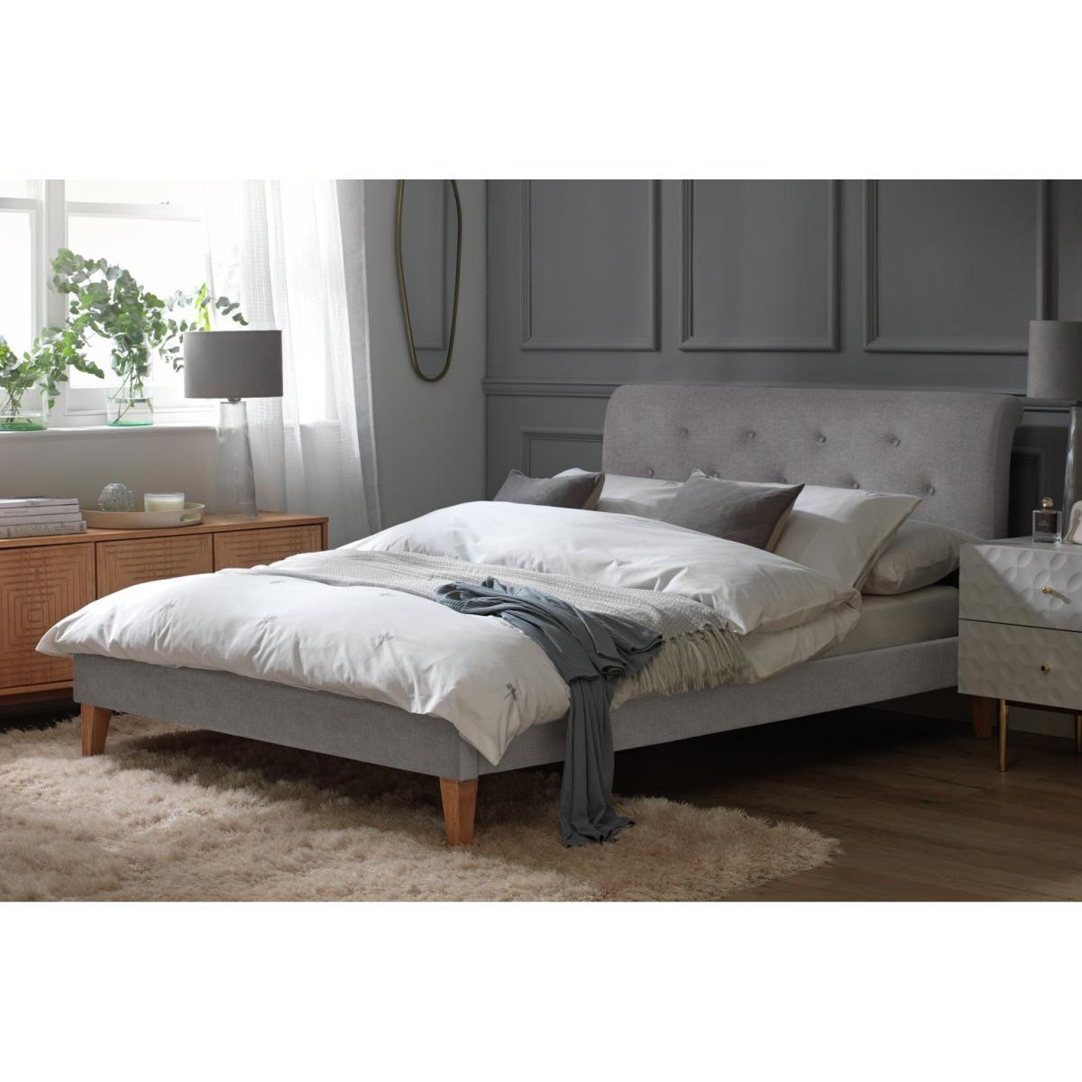 Get set for a luxury bed. This Anders king-sized bedframe with button-back details, oozes elegance. Sprung wooden slats provide a comfy base for your mattress and the light wooden feet add a stylish contrast. A magnificent centrepiece for any bedroom. Jump right in with Anders.