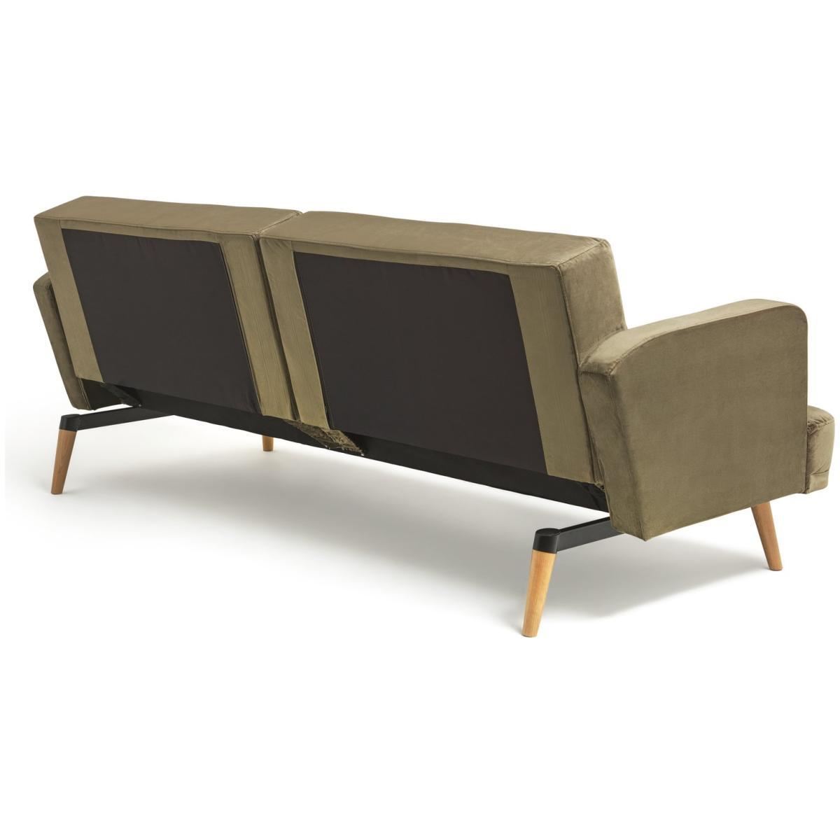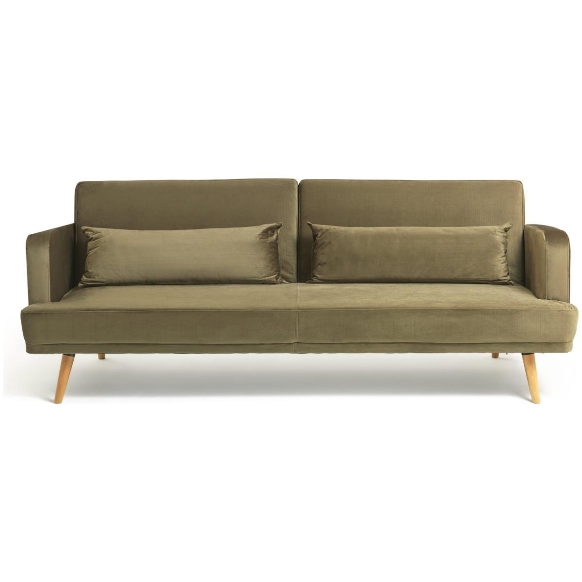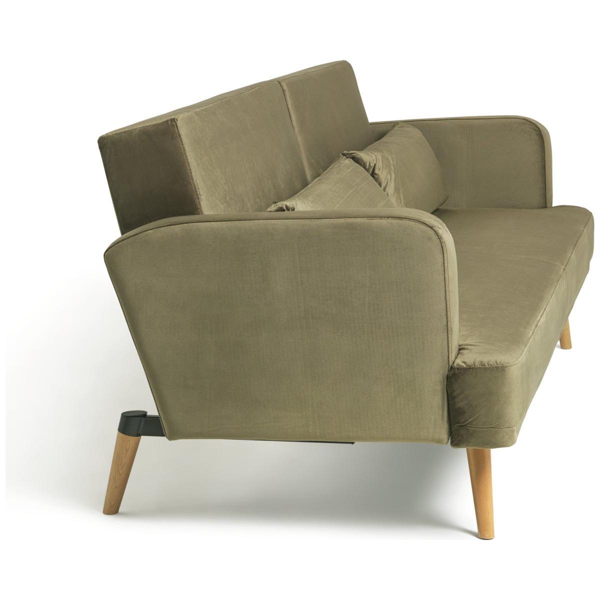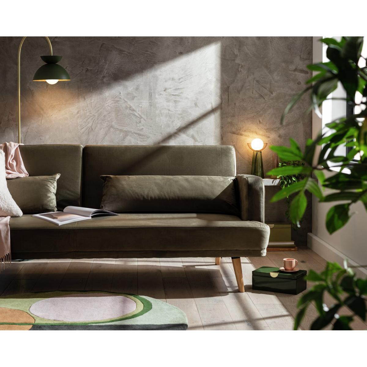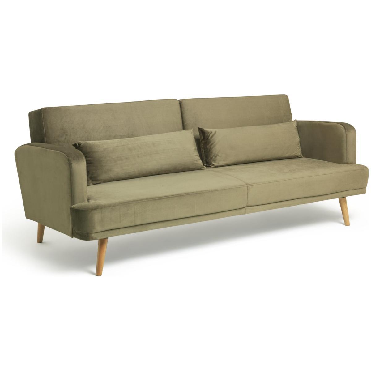 Clic clac, lie me flat. From designer sofa to overnight double bed in seconds. Amazing. Upholstered in flame sage velvet, I am also a contemporary sofa to yearn for. With a soft but firm foam fibre-wrapped seat and 2 gorgeous foam filled bolster cushions, you'll definitely be sitting comfortably. Spread out and sprawl, put your feet up, click the remote on, and let's try a night in together. Friends to impress. No problem. My mid-century lines and retro looks are highly sought after. And finally, if you move, take me too. You can remove my legs in an instant and I'm easy to get round corners. Ready to team up. It's your call. Part of the Andy collection. Clic clac mechanism. Double bed. Material:Made from 100% velvet. Wooden feet. Fixed seats with foam fibre wrap filling. Removable cushion(s) with fibre filling. Free fabric swatch available on this line. Dimensions: Sofa size H82, W214, D90cm (Depth as bed 110cm). Size of sleeping area: W110, L180cm. Floor to seat height: 40cm. Depth of seat: 56cm. Height of seat back: 78cm. Width of seating area between arms: 180cm. Height of arm rest: 65cm. Weight 42.5kg. Professional clean only. Suitable for regular use. Plump cushions regularly to maintain shape. Self-assembly - just add feet. Maximum individual user weight 200kg. Packaged dimensions:Package size H23, W215, D113cm. General information:We are excited to be welcoming some of our favourite HOME products into the Habitat range. Your product may arrive in Habitat or HOME packaging. Manufacturer's 1 year guarantee.