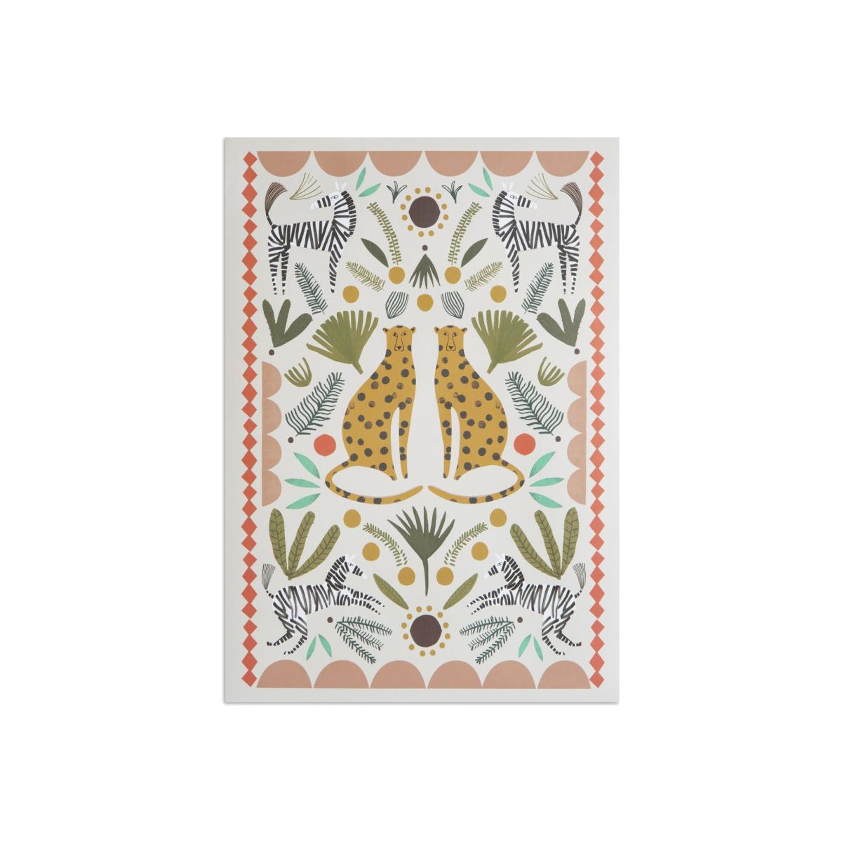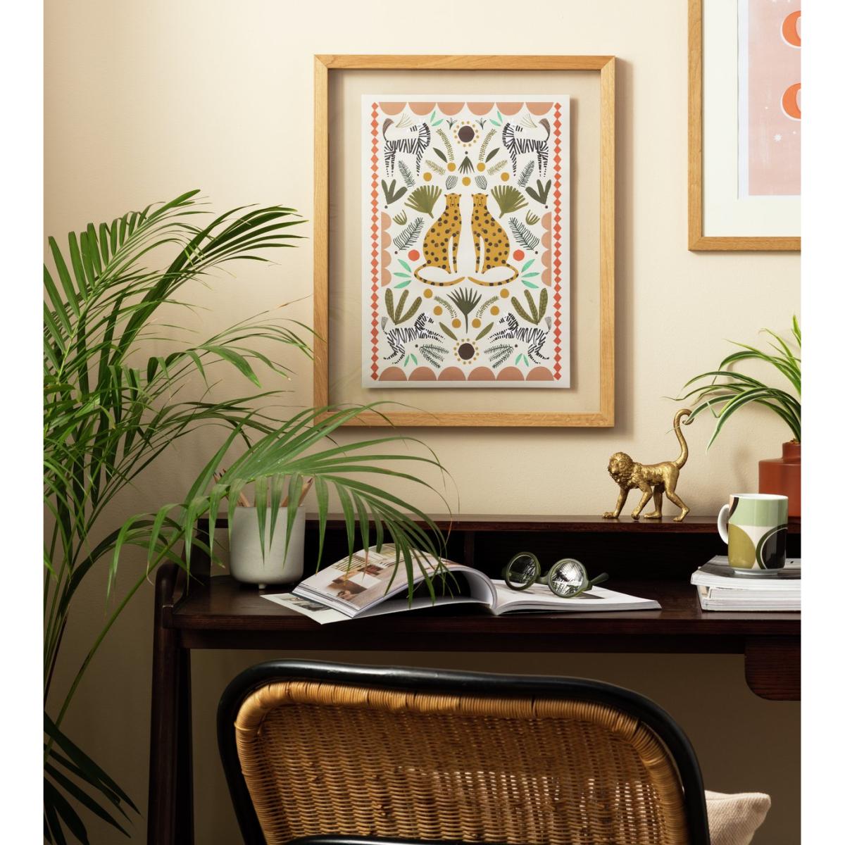 Into the wild. Bring a spot of safari style to your space with our A3 animal art print. Cute, colourful and covered in leopards, zebras and botanical patterns. It's where fun meets fierce.