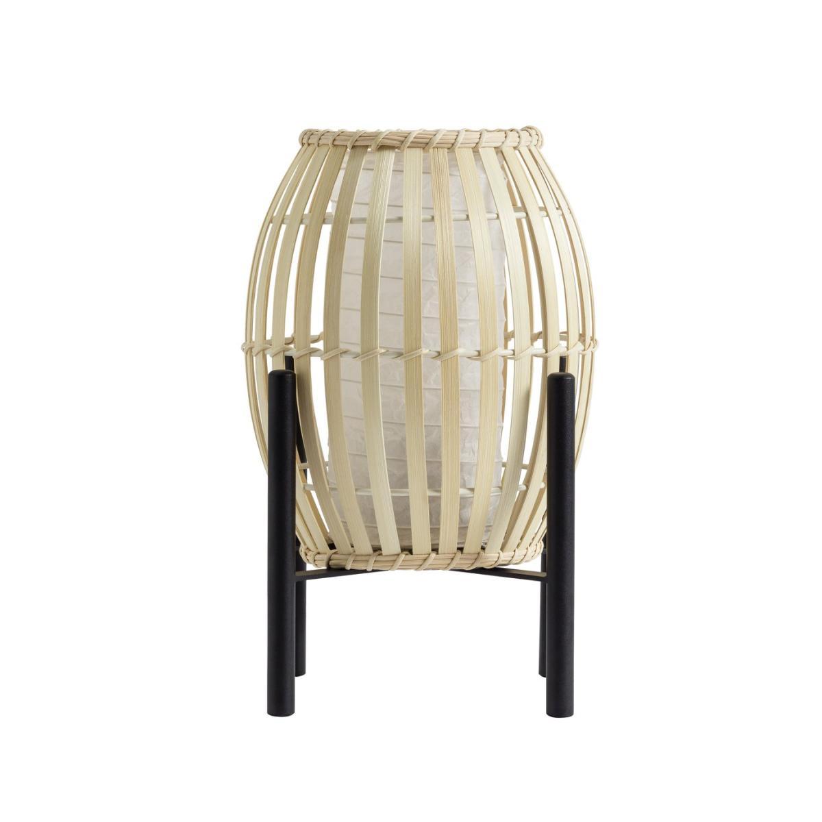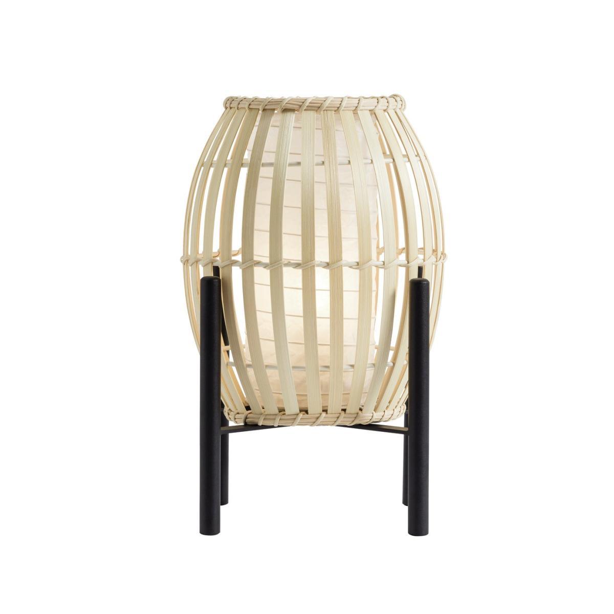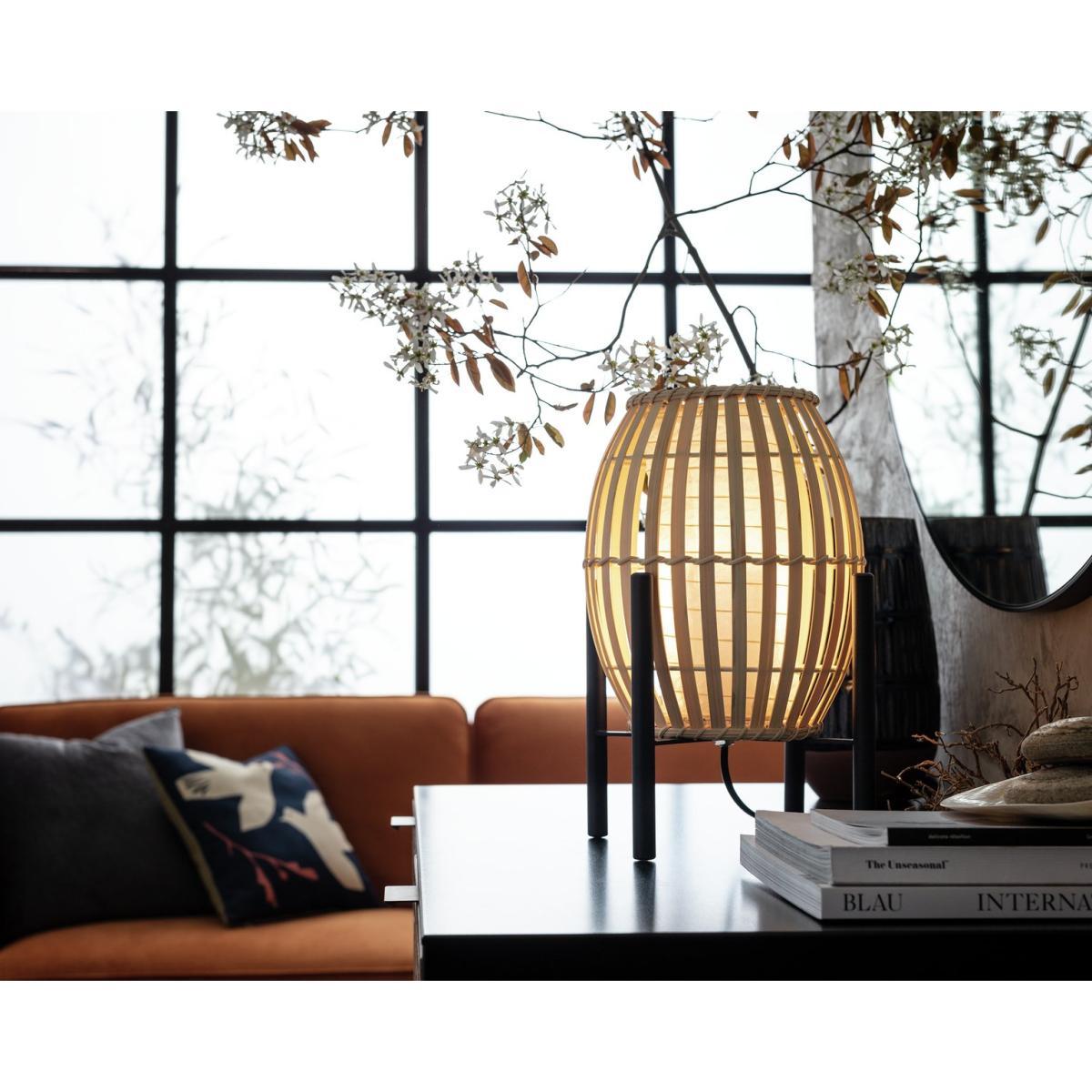Get neutral with our Aoki bamboo table lamp. This lantern-like living room essential creates a warm, ambient glow that's just perfect for snuggly evenings in. Crafted with natural materials and an elegant black base, it'll bring a touch of Skandi style to your space. Cosy, contemporary and right on trend.