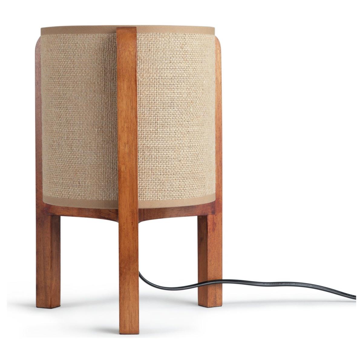 Handsome in hessian. Pop our natural woven column lamp on a desk or side table and enjoy the ambient glow. Designed to bring a Mid Century feel to your lounge or bedroom. Set on an elegant 3-legged rubberwood base, the crosshatch weave adds a natural texture to your space. And the neutral shade makes for a soft light that's ideal for relaxing. Just pop in a bulb and get ready to chill. We love a theme. This dashing design is also available as a floor-standing lamp. Dimensions: Overall size H30, Diameter 23cm. Shade size H18, D23cm. Diameter of base 23cm. Cord length 1.85m. Bulb Information: Bulbs required 1 x classic E14 small edison screw LED bulb(s) (not included). Recommended maximum wattage: 6 watts. General Information: In-line switch. IP rating 20 - not suitable for bathroom use. Supplied assembled. Manufacturer's 1 year guarantee.