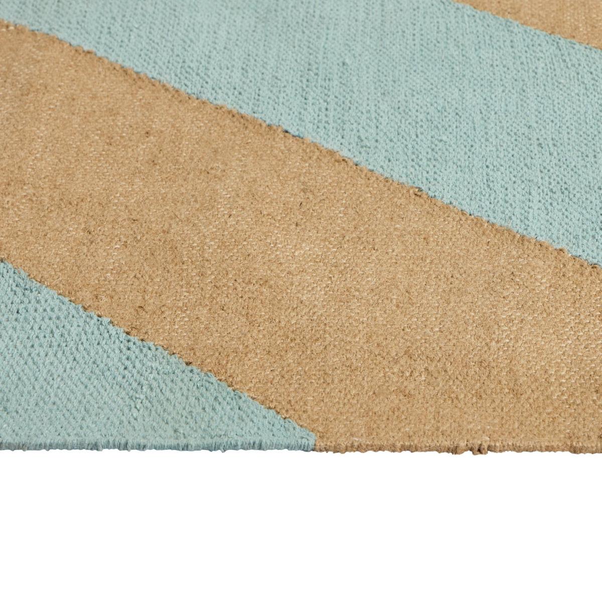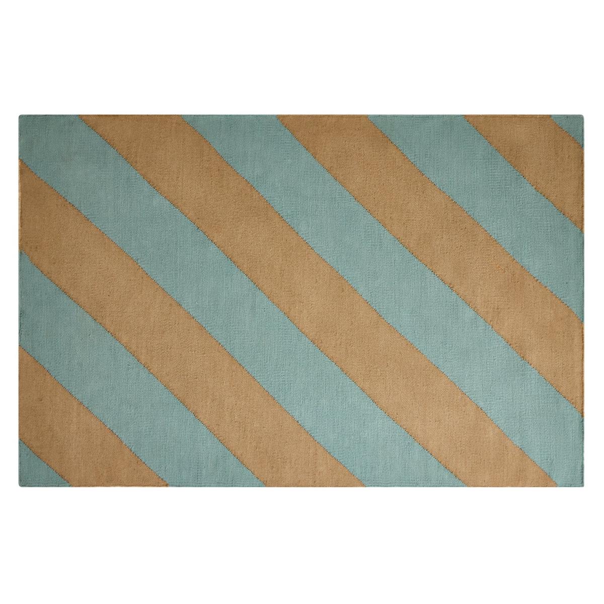 Slanted, striped, and seriously stylish. Our flatweave rug is fresh and organic with bold diagonal lines and a raw, tactile finish. Hand-crafted from natural fibres, it's as sturdy as it is striking. Pop it in high traffic spots around the house or wherever you could use a bit more character underfoot. Hand made. Made in India. 54% cotton, 46% jute. Non-slip backing. Spot clean only. Size L170, W120cm. 2.2kg. Blue Stripes design.