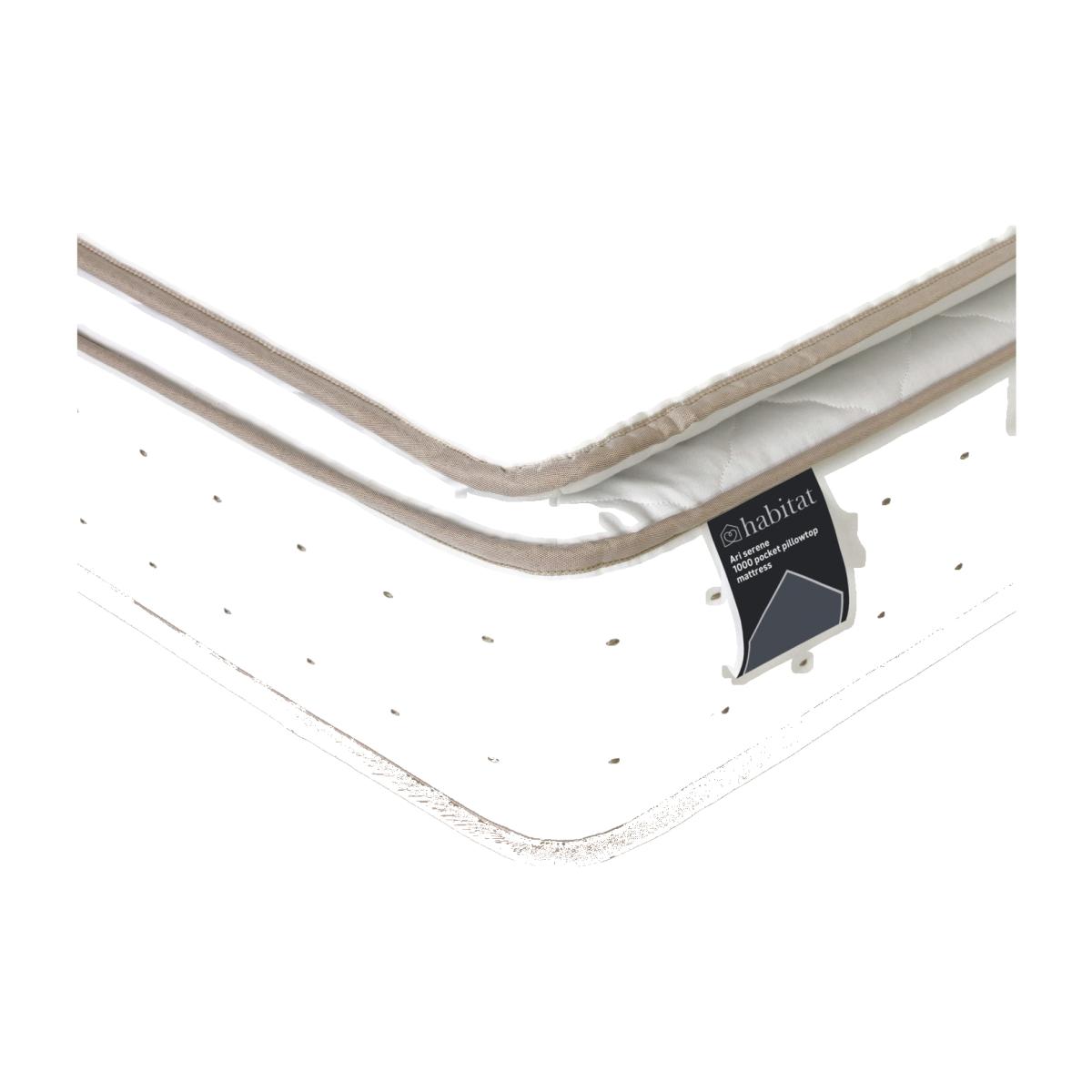 Naturally, deeply relaxing. Certified 100% British wool is the hero filling inside our Habitat exclusive quilted pillow top Ari mattress. Foam free, hypoallergenic and breathable. With an extra top layer of comfort, plus 1000 individually responsive pocket springs to mellow any movement. Just what you need for a good night's sleep. Easy to care for. No need to turn this mattress. A simple, regular rotation keeps it in tip top shape. At Argos Home we want you to get the best night's sleep possible, so we offer a 100 night comfort promise on our mattresses. Try your new mattress for up to 100 nights and if you aren't sleeping soundly, we'll offer you an exchange for one that suits you better. Part of the Ari collection. Medium firm feel. Pocket sprung with pillowtop layer mattress with 1000 springs. Knit cover with quilted finish. No roll together. Anti allergy. Mattress size W135, L190, D26.5cm. No-turn mattress. Rotate mattress regularly. Made in the UK.