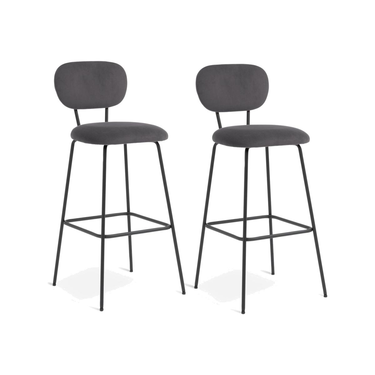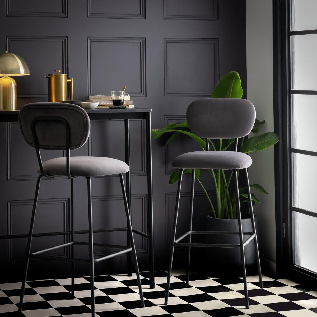 Elevate the moment with our pair of smart Ariana bar stools. Super luxurious, each is upholstered in a soft, rich grey velvet fabric with padded seat and comfy cocktail back. Lovely and luxurious. Finished with a footrest and matt black legs. Now what will you be having? Add a little extra flair with our elegant and glamorous barware. From cocktail shakers to serving trays. Part of the Ariana collection. Chair: 2 chairs supplied. Size H108, W44, D52cm. Seat height 76.5cm. Foot rest. Metal frame with metal legs. Velvet seat pad. Self-assembly - 2 people recommended. Max user weight per chair 110kg. Individual chair weight 12.4kg. Wipe clean or lightly vacuum. Package Dimensions: Chair package size: H73, W19, D71cm. General information: We are excited to be welcoming some of our favourite HOME products into the Habitat range. Your product may arrive in Habitat or HOME packaging. Manufacturer's 2 year guarantee.