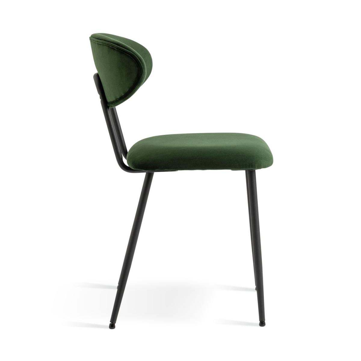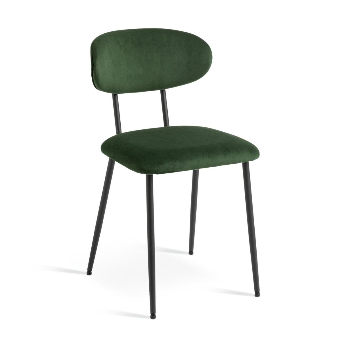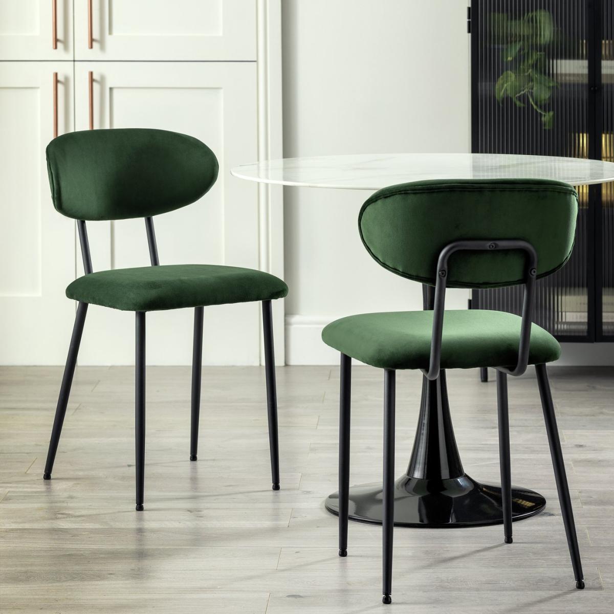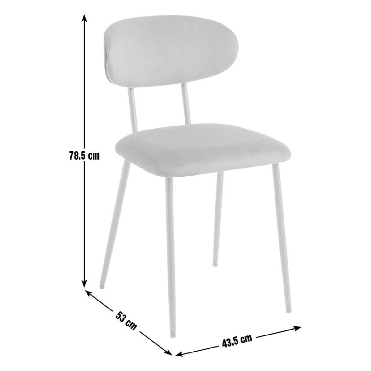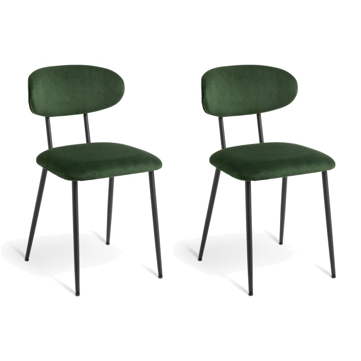 A pair of classic chairs with a twist of contemporary. The curved backrest and padded seat are upholstered in rich velvet. The slim splayed legs are made from steel. A dashing duo to give a room a retro refresh. Part of the Ariana collection. Chair: 2 chairs supplied. Size H78.5, W43.5, D53cm. Seat height 49cm. Wood effect frame with steel legs. Velvet seat pad. Self-assembly - 2 people recommended. Max user weight per chair 110kg. Individual chair weight 11.2kg. Wipe clean or lightly vacuum. Package Dimensions: Chair package size: H34, W53, D46cm. General information: Manufacturer's 1 year guarantee. FSC certified meaning the materials used for this product are responsibly sourced.