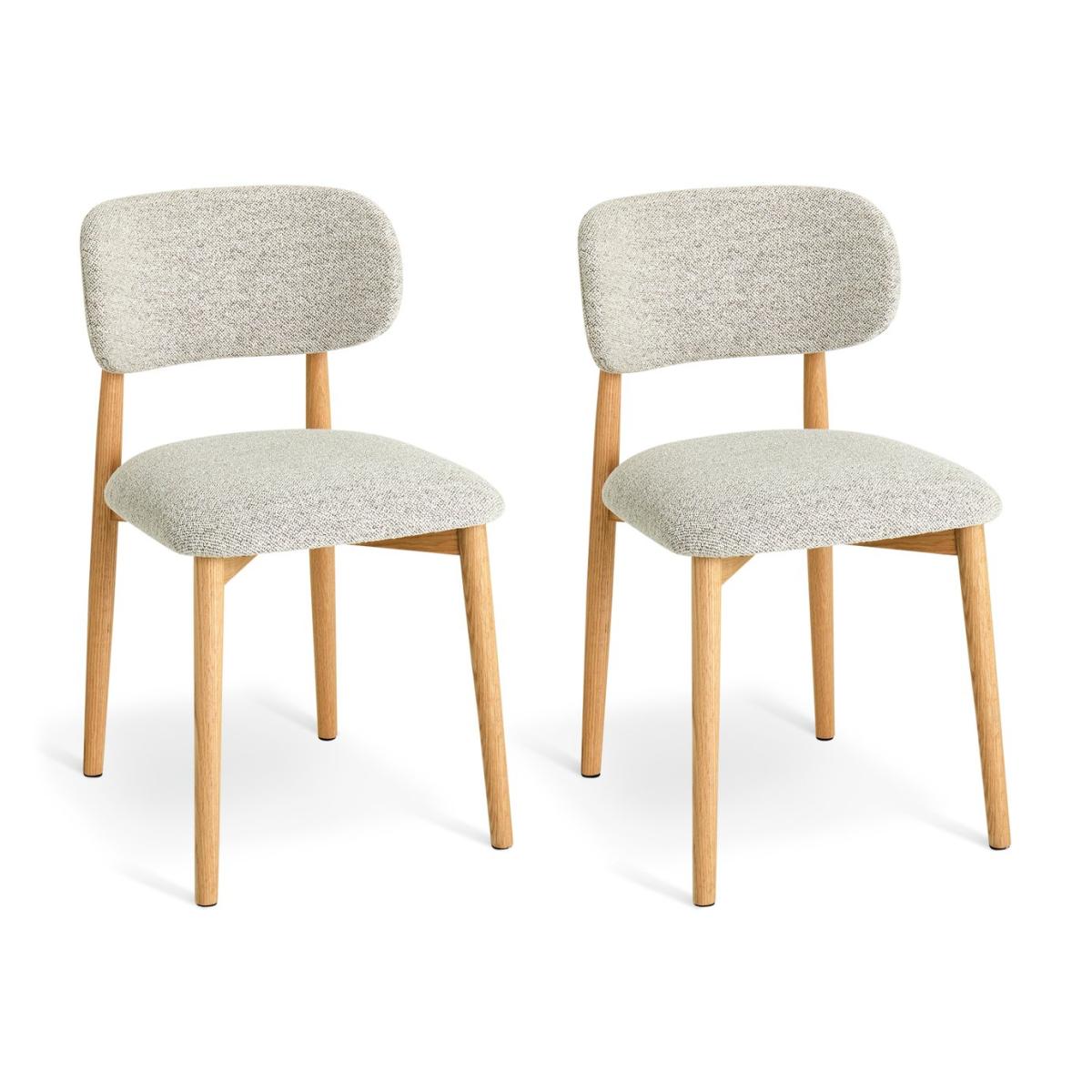 Dining chairs with Scandi flair. Light coloured solid oak and tastefully textured neutral fabric means this pair of chairs are at home with most decors. A comfortably contemporary choice. Part of the Arona collection. 2 chairs supplied. Size H80, W49, D51cm. Seat height 48cm. Oak frame with oak legs. Fabric seat pad. Self-assembly - 1 person recommended. Max user weight per chair 110kg. Individual chair weight 13.5kg. Dust or wipe with a damp cloth only. Package Dimensions: Package size: H27, W65, D77.5cm. General information: By choosing FSC certified products, you are supporting responsible management of the world's forests. Manufacturer's 2 year guarantee.