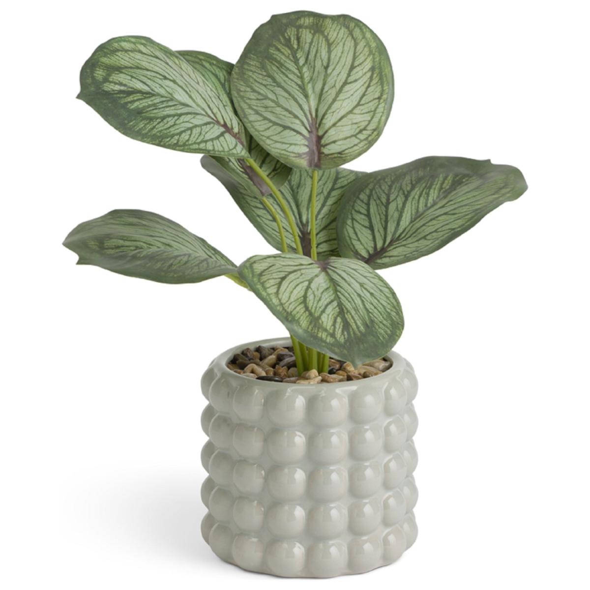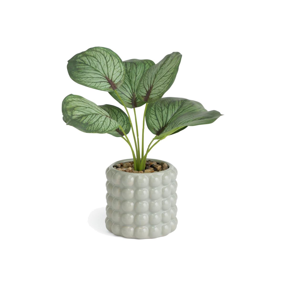 Everlasting and evergreen, this cute Calathea plant is a bright addition to any space. With variegated green leaves that look just like the real thing. Comes in its own ceramic bobble pot for extra charm. Now that's a pretty sight. Size H36, W21, D25cm. Diameter 12cm.