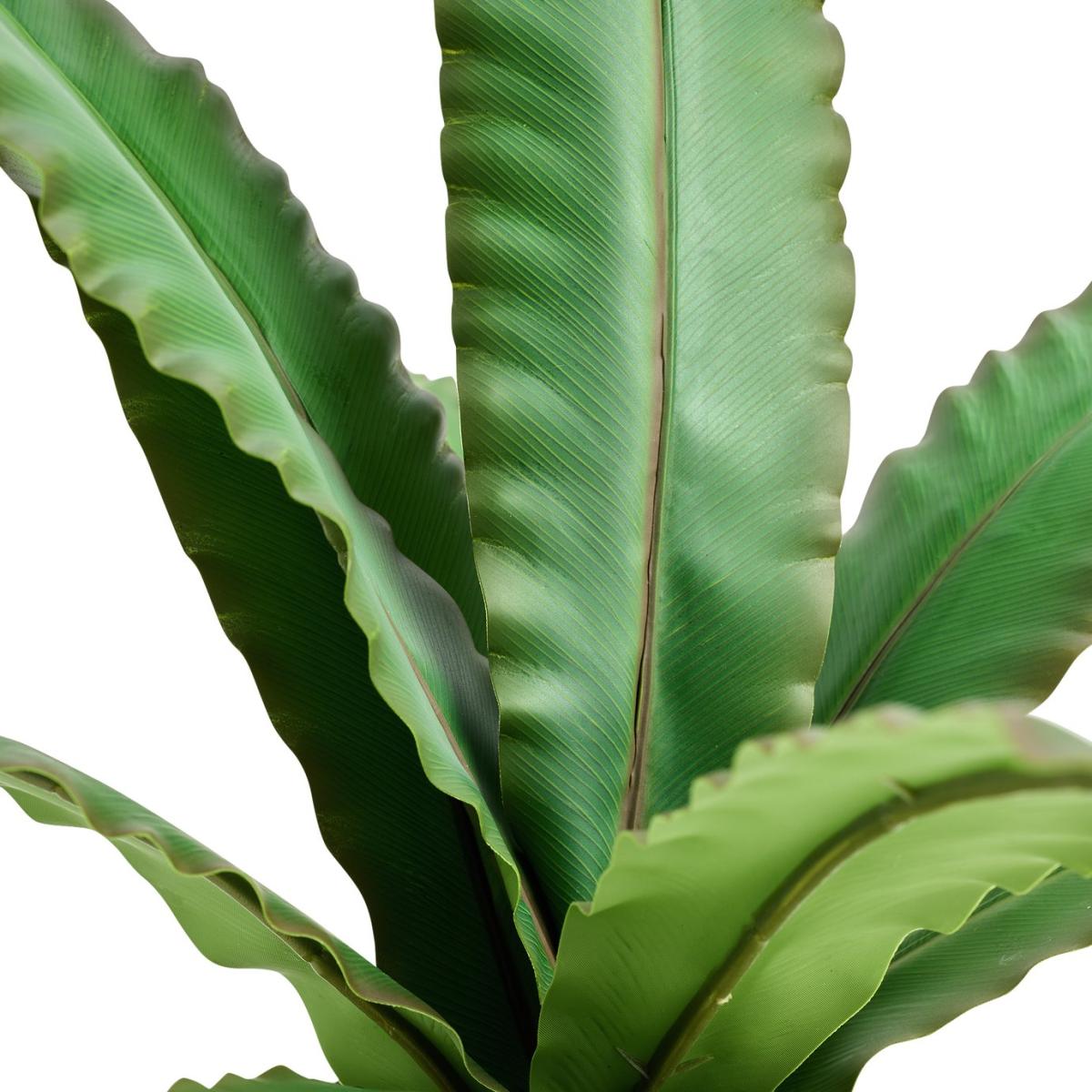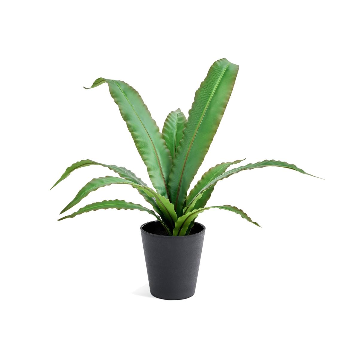 A fabulous faux fern. Make a statement all year round with this wonderfully realistic Birds Nest plant. This exotic green plant with its tall, elegant ruffle edged leaves are normally found nestled in rainforests. But this beautiful specimen is happy to be placed anywhere in the house that needs a burst of botanical beauty. Size H48.26, W40.64, D30.48cm.