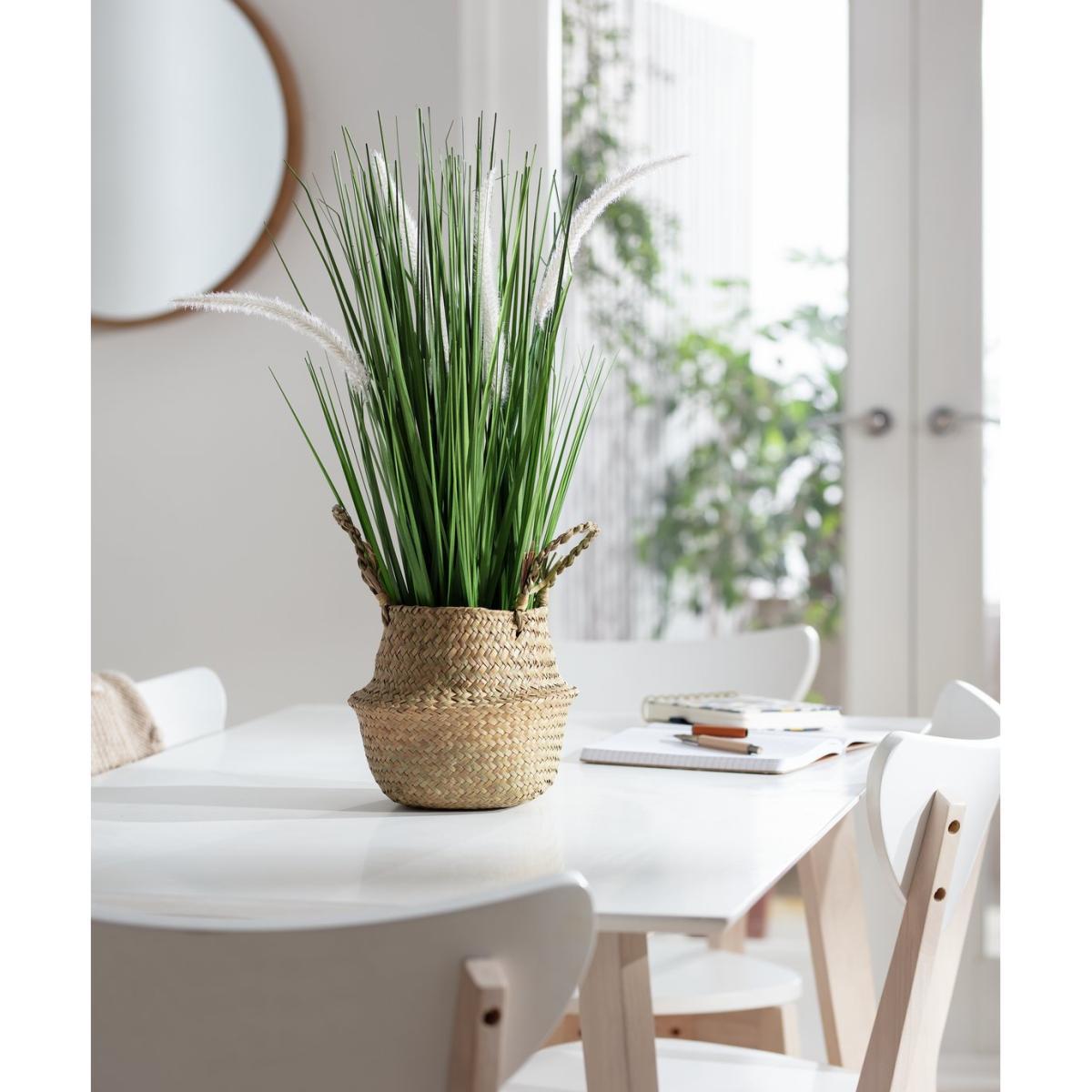 Our toweringly tall faux pampas plant gives you the glorious greenery of the real deal. No pruning or sunlight needed. Cool. Just look at those long, luscious leaves and fluffy white flowers. Sitting pretty in a woven basket, bring a fresh, natural feel to your space. Botanical beauty, zero bother.