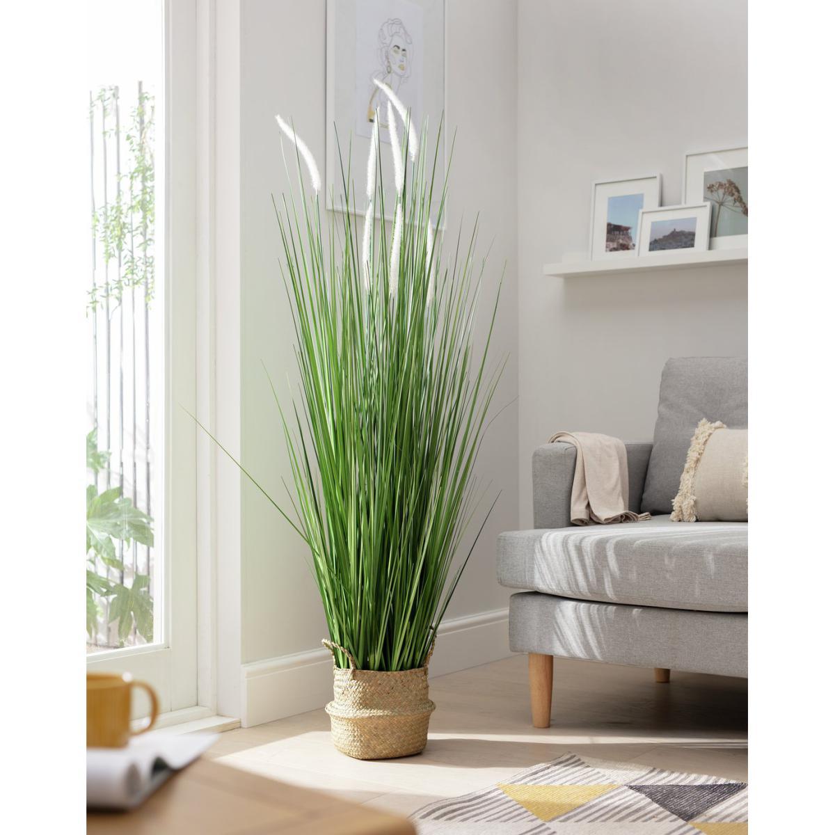 Botanical beauty, zero bother. Our big faux pampas plant gives you the succulent greenery of the real deal. No pruning or sunlight needed. So cool. Just look at those long, luscious leaves and fluffy white flowers. Sitting pretty in a woven basket, it'll bring a fresh, natural feel to your space. Go on, invite the outside in. Feeling this foliage? Have a browse of our full artificial plant collection. Size H712, W30.5, D30.5cm.