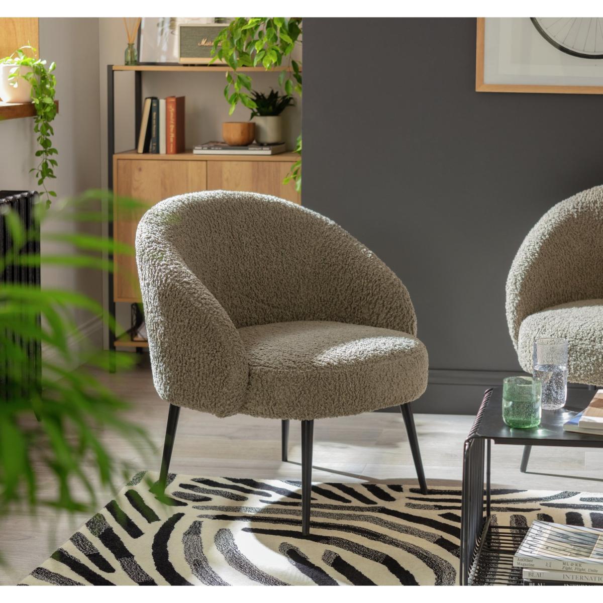 I love the Habitat Ash Boucle Chair for its versatility and understated elegance. The soft grey boucle fabric makes it a perfect addition to both modern and transitional schemes, adding texture without overpowering the space. It works particularly well in cosy corners, reading nooks, or as an accent piece in living rooms and bedrooms. Practical styling tips include pairing it with neutral-toned cushions or drapes for a relaxed look, or contrasting it with rich colours and patterns for a more contemporary vibe. Its sleek, tapered legs also make it a great choice for small spaces, as it maintains a light and airy feel.