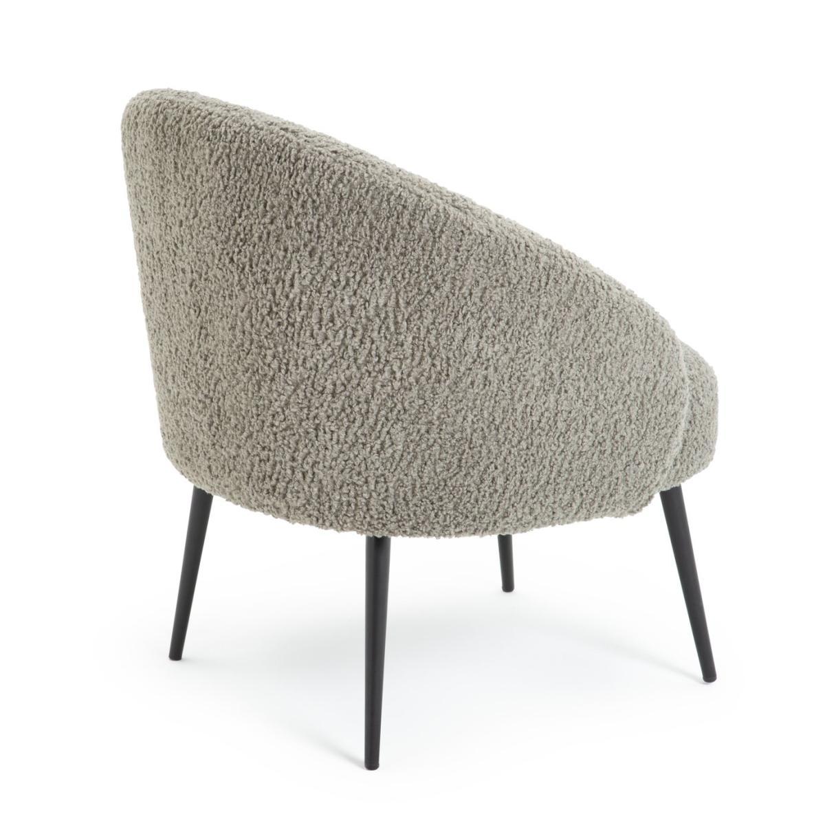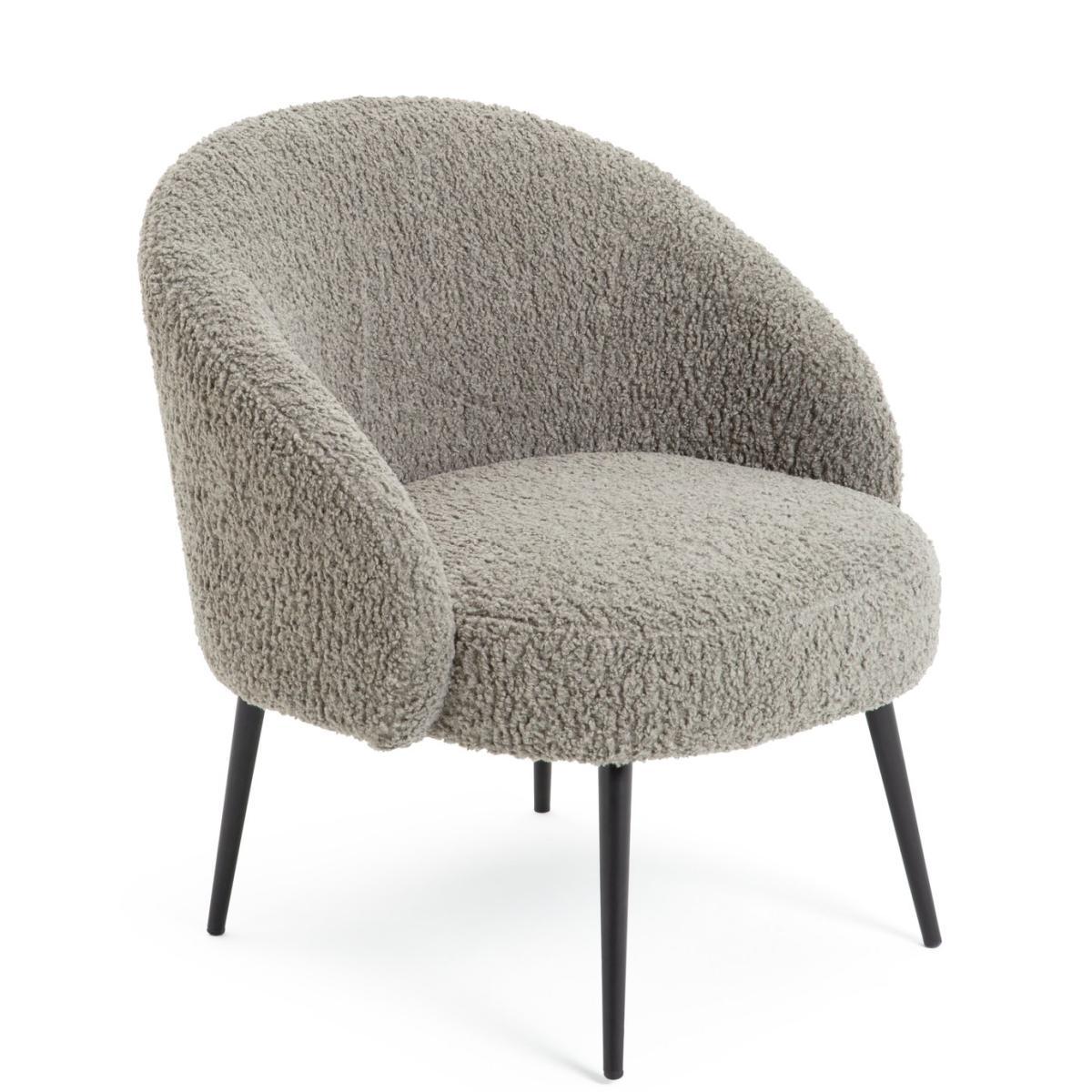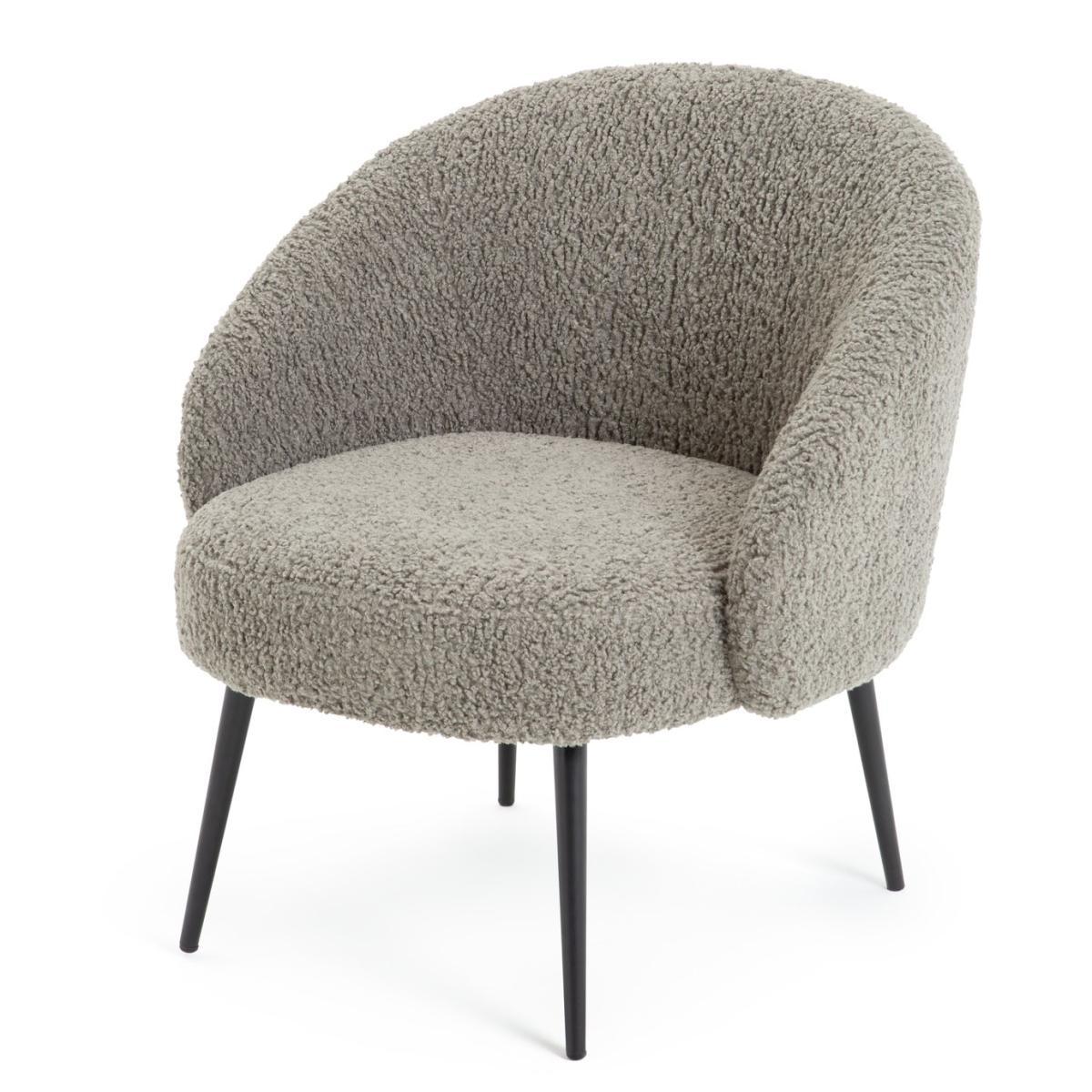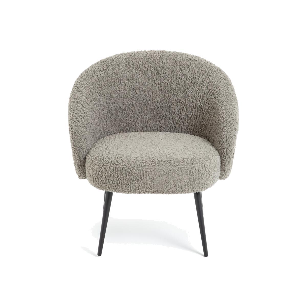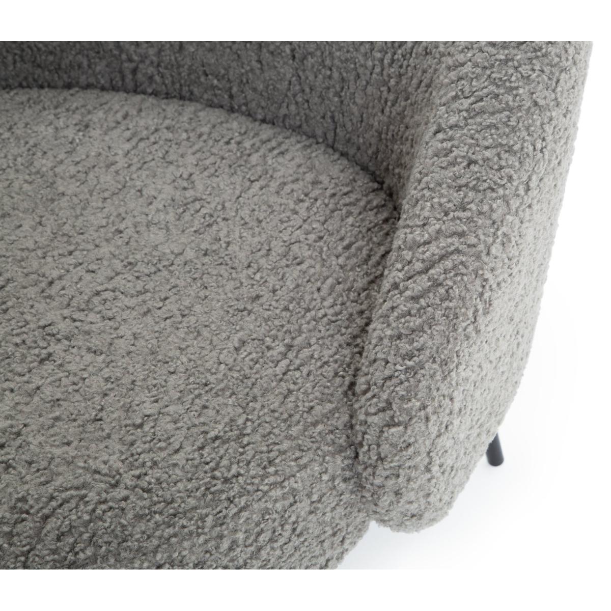 Sink into softness with our cosy, curvaceous chair. Upholstered in 100% grey boucle, it's fluffy and fabulous. A rounded backrest and thick foam-filled cushion surround and support you like a big hug. While slim, tapered metal legs in black powder coating offer a smart, modern edge. Heavenly, cloud-like comfort.