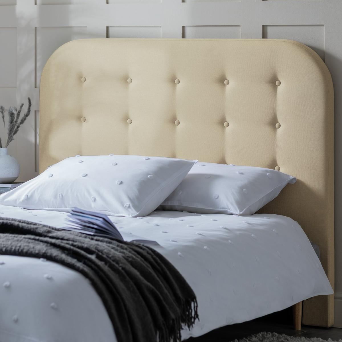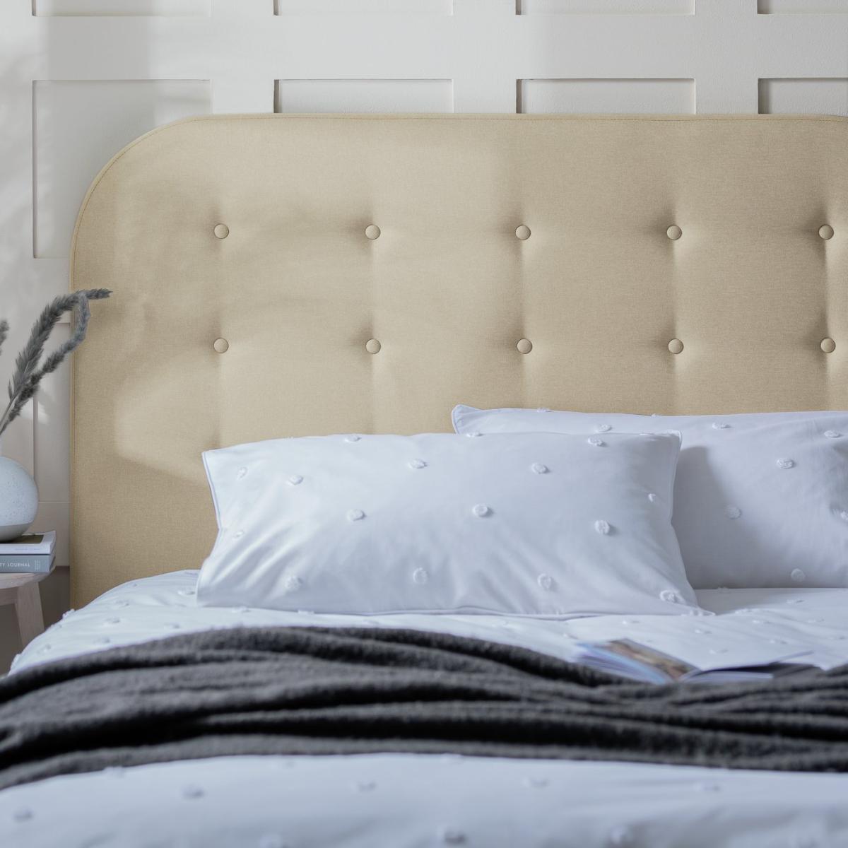 Is your double bed in need of a makeover? Dress it up with our fab fabric headboard. The strong steel frame is padded and upholstered in classic cream. Button detailing adds to the traditional luxe looks. An easy way to spruce up your sleep space. Compliment your new headboard with some fresh bedlinen. From duvet sets to throws, plain neutrals to vibrant patterns, we've stacks of styles. Simply peruse and choose. Part of the Ashby collection. Size W145, H120cm. Weight 12kg. Self-assembly: 2 people recommended. Manufacturer's 2 year guarantee. FSC certified meaning the materials used for this product are responsibly sourced.
