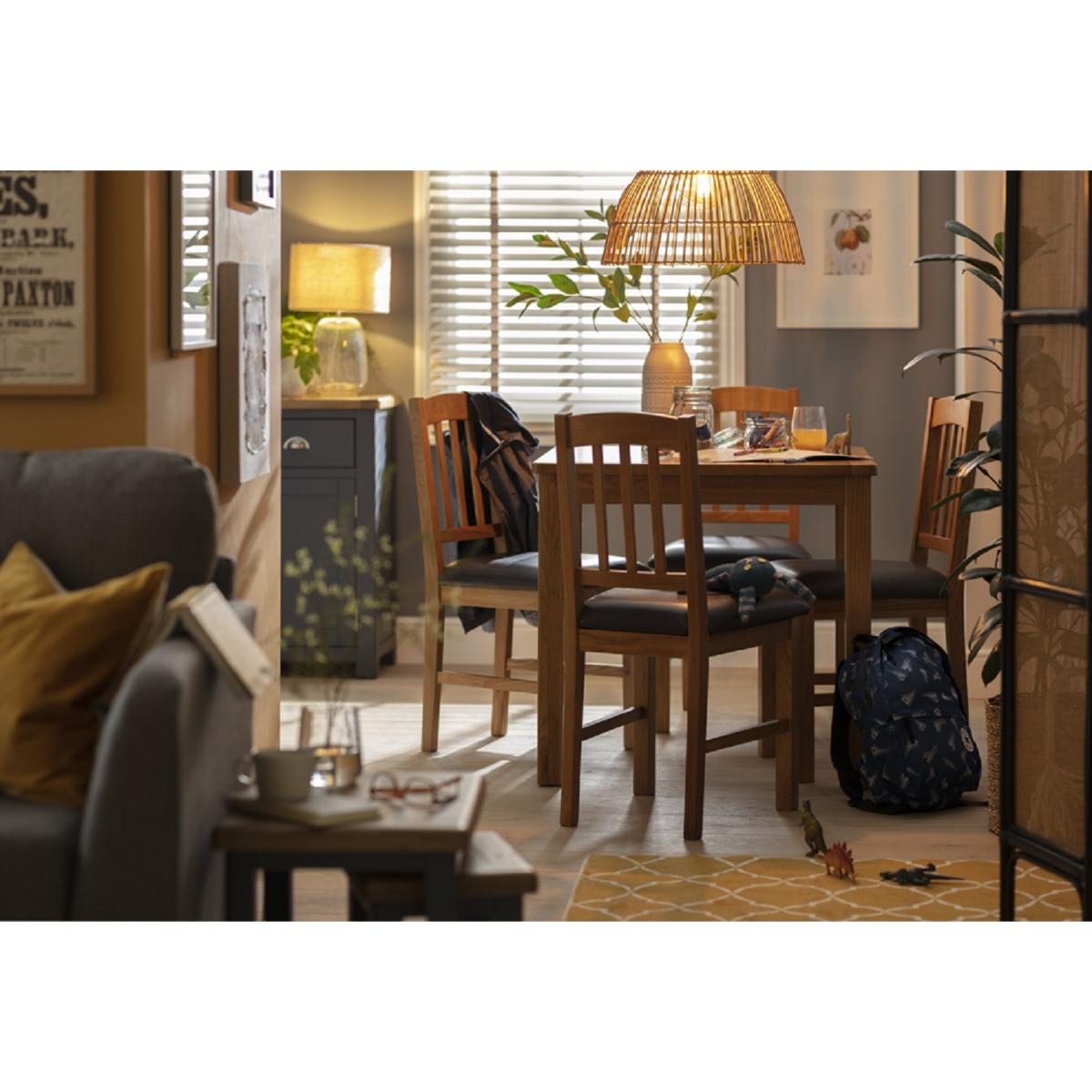 This dining set offers a versatile, timeless appeal with its Ashwell wood veneer table and classic oak chairs, making it a great choice for both traditional and contemporary interiors. I love how the natural wood tones bring warmth and a sense of ease to any space. It pairs well with neutral colour schemes for a calm, understated look, or can be styled with colourful or patterned accessories to add personality. Practical styling tips include layering with textured table runners, placing statement lighting above, or grouping around an area rug to define the dining zone. Its simplicity and durable construction make it ideal for family life, while still maintaining an elegant, understated aesthetic.