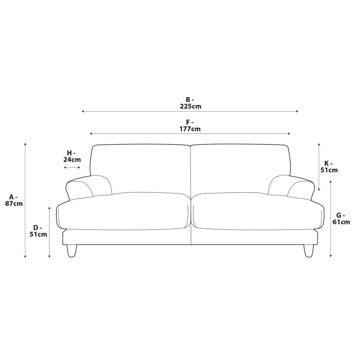 When it's made for you, you know you'll love it. Offering a contemporary take on a much-loved classic shape, the Askem 3-seater sofa is sinkingly soft and comfortable. Upholstered in a velvety sheen chenille, the Askem takes on a rich, soft, textured look. With a taller backrest for added support, wide arms and generously padded seats and back cushions. Offering relaxed comfort, Askem's cushions use high density foam, further wrapped in a thick quilted fibre wrap to create the perfect balance of support, durability and recovery. Handmade to order in the UK. The Askem uses quality materials and traditional techniques for furniture that's unique to you. Available in a choice of sizes and fabrics including Aquaclean technology protection built into the yarn, which is easy to clean with just water. Part of the Askem collection. Material: Made from 100% polyester. Wooden feet - ash. Removable seats with fibre filling. Removable cushion(s) with fibre filling. Free fabric swatch available on this line. Dimensions: Size H87, W225, D110cm. Floor to seat height: 51cm. Depth of seat: 70cm. Height of seat back: 51cm. Width of seating area between arms: 177cm. Height of arm rest: 61cm. Weight: 62kg. Packaged dimensions: Package size H92, W230, D115cm. General information: FSC certified meaning the materials used for this product are responsibly sourced. We do more than deliver your product, we unpack, set it up and take away the packaging. Manufactured in the UK using components sourced globally. Professional clean only. Plump cushions regularly to maintain shape. Manufacturer's 15 year frame guarantee.