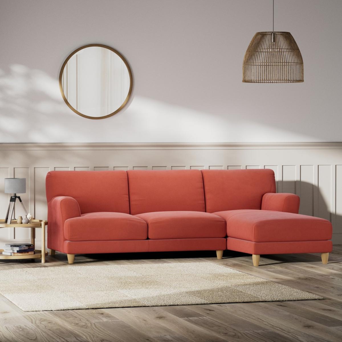 When it's made for you, you know you'll love it. Offering a contemporary take on a much-loved classic shape, the Askem 4-seater right-hand chaise is sinkingly soft and comfortable. Upholstered in a velvety sheen chenille, the Askem takes on a rich, soft, textured look. With a taller backrest for added support, wide arms and generously padded seats and back cushions. Offering relaxed comfort, Askem's cushions use high density foam, further wrapped in a thick quilted fibre wrap to create the perfect balance of support, durability and recovery. Handmade to order in the UK. The Askem uses quality materials and traditional techniques for furniture that's unique to you. Available in a choice of sizes and fabrics including Aquaclean technology protection built into the yarn, which is easy to clean with just water. Part of the Askem collection. Right hand corner. Material: Made from 100% polyester. Wooden feet. Removable seats with fibre filling. Free fabric swatch available on this line. Dimensions: Size H87, longer width 256,. Floor to seat height: 51cm. Depth of seat: 70cm. Height of seat back: 51cm. Longer seating area width between arms: 207cm. Height of arm rest: 61cm. Packaged dimensions: Package size H92, W167, D115cm. Second package size H92, W99, D182cm. General information: FSC certified meaning the materials used for this product are responsibly sourced. We do more than deliver your product, we unpack, set it up and take away the packaging. Manufactured in the UK using components sourced globally. Professional clean only. Plump cushions regularly to maintain shape. Manufacturer's 15 year frame guarantee.