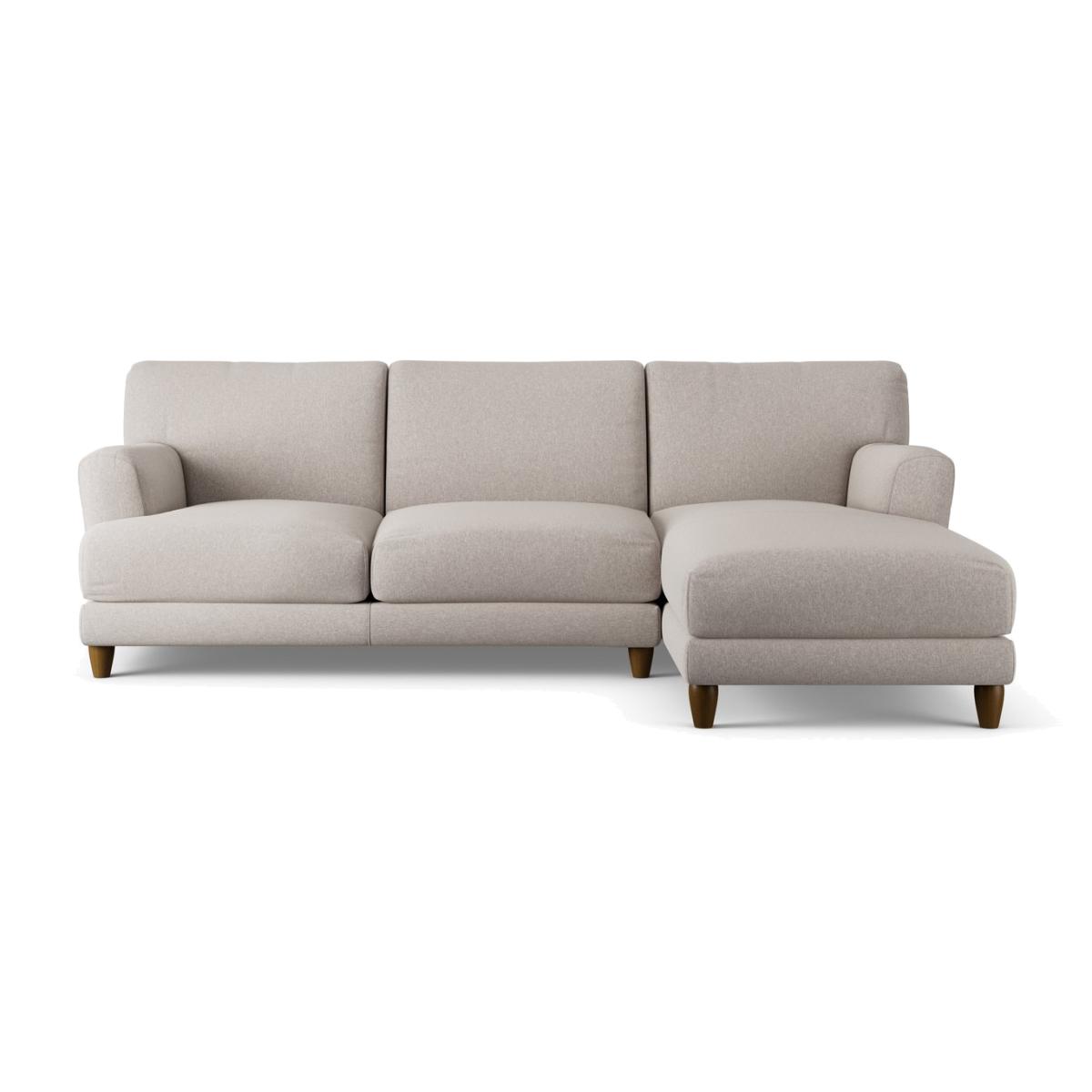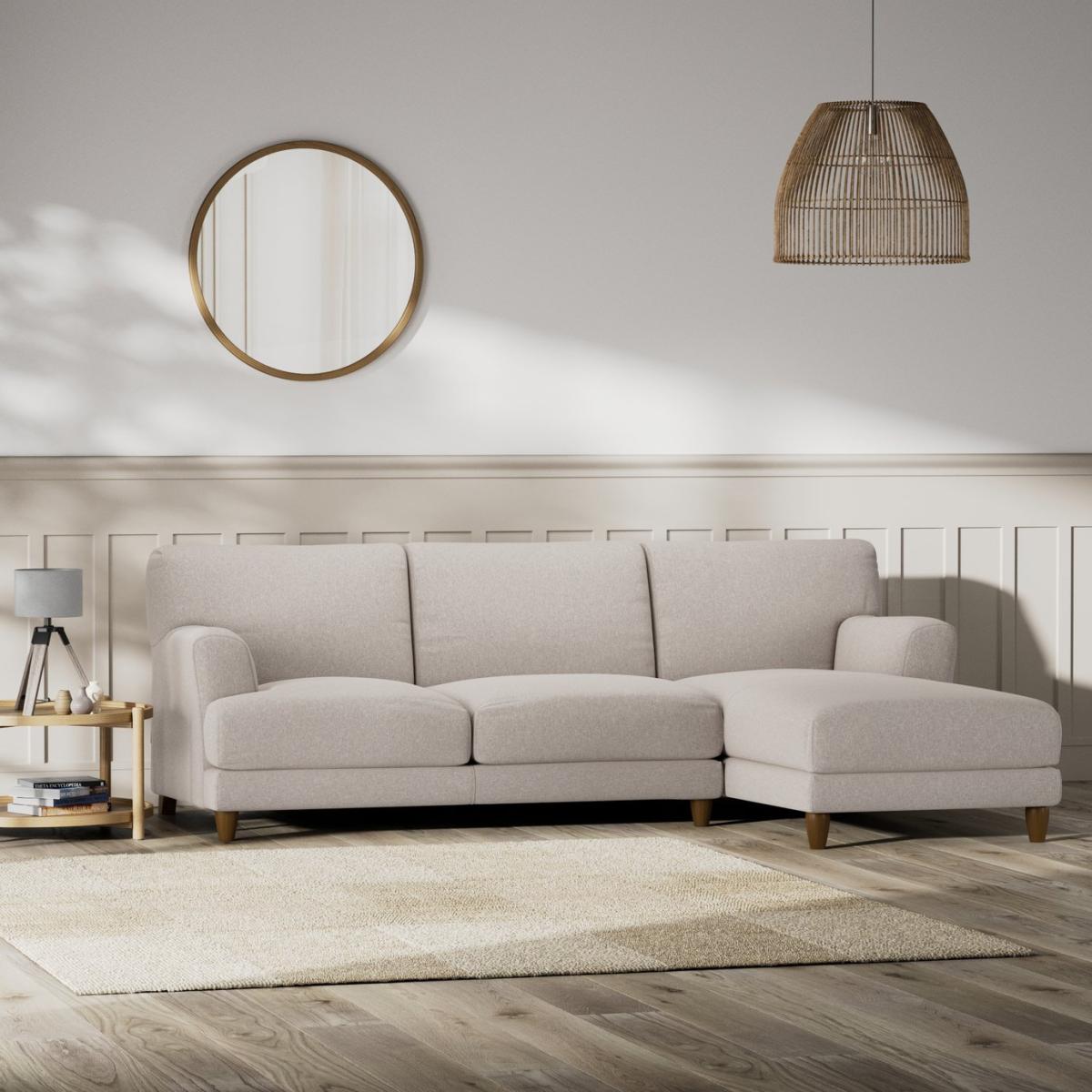 When it's made for you, you know you'll love it. Offering a contemporary take on a much-loved classic shape, the Askem 4-seater right-hand chaise is sinkingly soft and comfortable. Upholstered in a contemporary Flat Weave, the Askem has a smooth but tonal look. With a taller backrest for added support, wide arms and generously padded seats and back cushions. Offering relaxed comfort, Askem's cushions use high density foam, further wrapped in a thick quilted fibre wrap to create the perfect balance of support, durability and recovery. Handmade to order in the UK. The Askem uses quality materials and traditional techniques for furniture that's unique to you. Available in a choice of sizes and fabrics including Aquaclean technology protection built into the yarn, which is easy to clean with just water. Part of the Askem collection. Right hand corner. Material: Made from 100% polyester. Wooden feet. Removable seats with fibre filling. Free fabric swatch available on this line. Dimensions: Size H87, longer width 256,. Floor to seat height: 51cm. Depth of seat: 70cm. Height of seat back: 51cm. Longer seating area width between arms: 207cm. Height of arm rest: 61cm. Packaged dimensions: Package size H92, W167, D115cm. Second package size H92, W99, D182cm. General information: FSC certified meaning the materials used for this product are responsibly sourced. We do more than deliver your product, we unpack, set it up and take away the packaging. Manufactured in the UK using components sourced globally. Professional clean only. Plump cushions regularly to maintain shape. Manufacturer's 15 year frame guarantee.