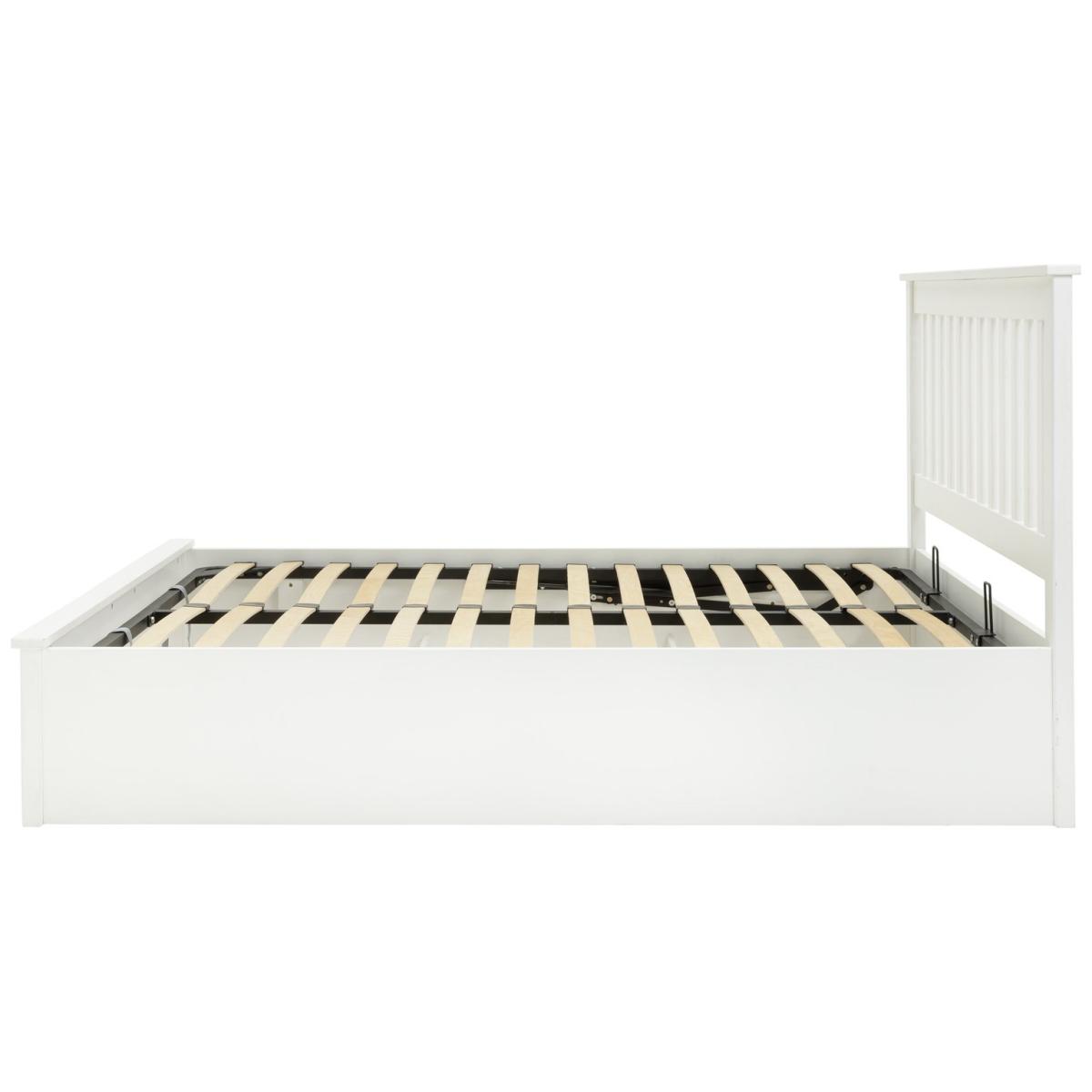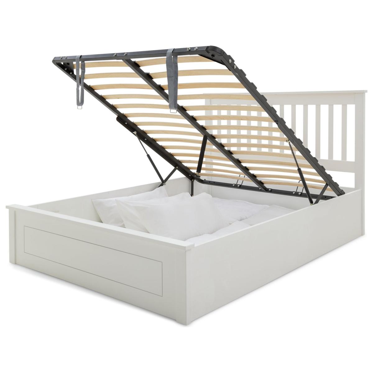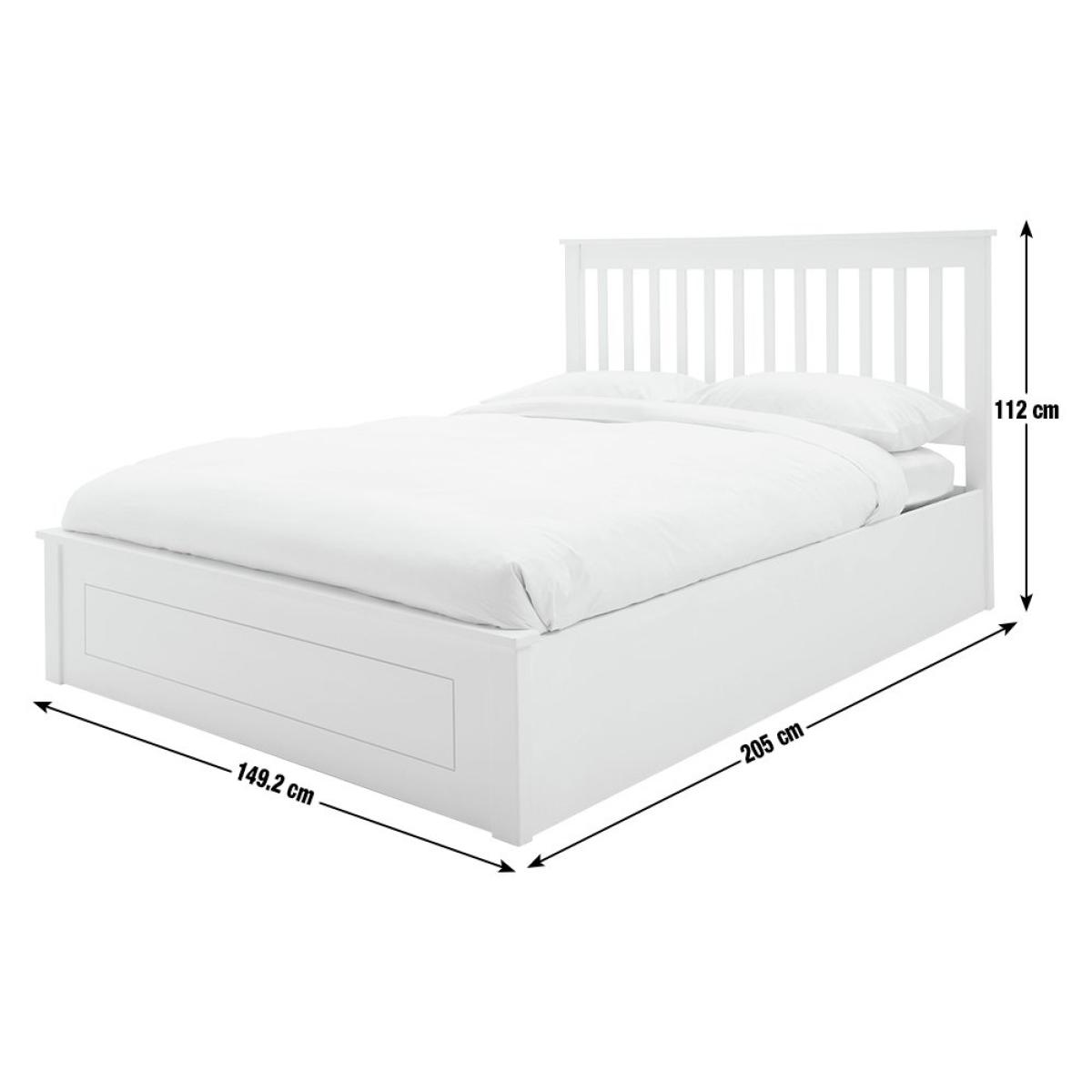 Our Aspley double ottoman bedframe in solid wood is made to both sleep and store. To reveal its spacious, concealed compartment, use the hidden grab handles to raise the inner frame. Easy. One smart and attractive bedframe. Part of the Aspley collection. Mattress not included. Wooden frame. Base with sprung wooden slats. End lift. Ottoman: end opening. Size W149.2, L205, H112cm. Height to top of siderail 35.5cm. Weight 77.2kg. Packed flat - 2 people recommended. Package Dimensions: Package 1 dimension H9.4, W156, D73.8cm. Package 1 weight: 37.9kg. Package 2 dimensions: H17.5, W201.4, D38cm. Package 2 weight: 42.8kg. General information: Manufacturer's 1 year guarantee. FSC certified meaning the materials used for this product are responsibly sourced.