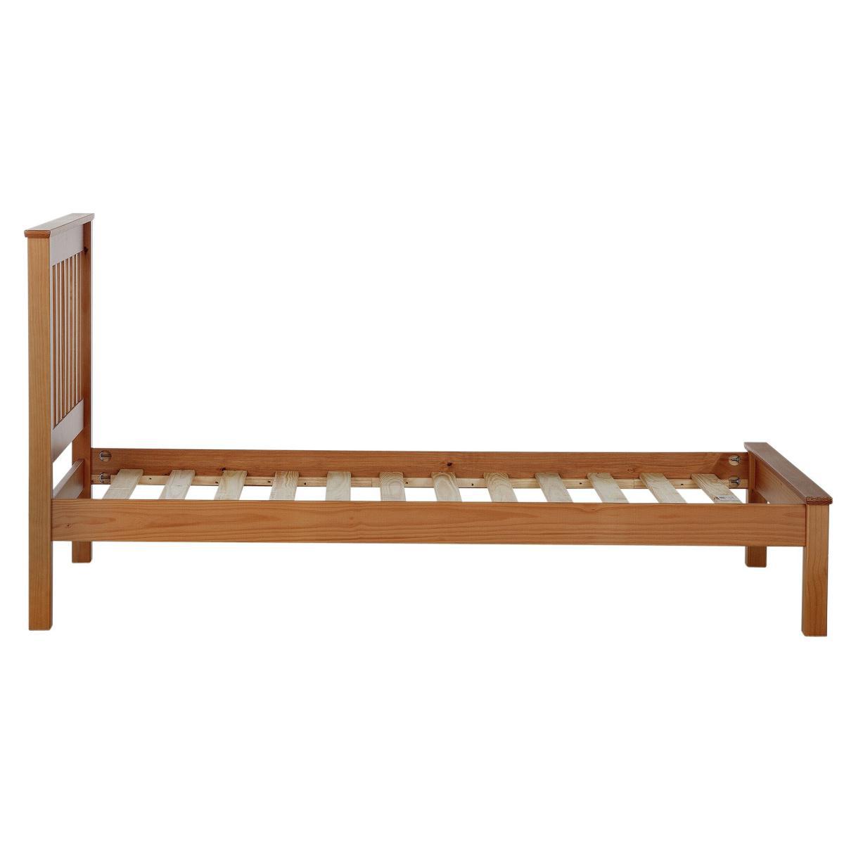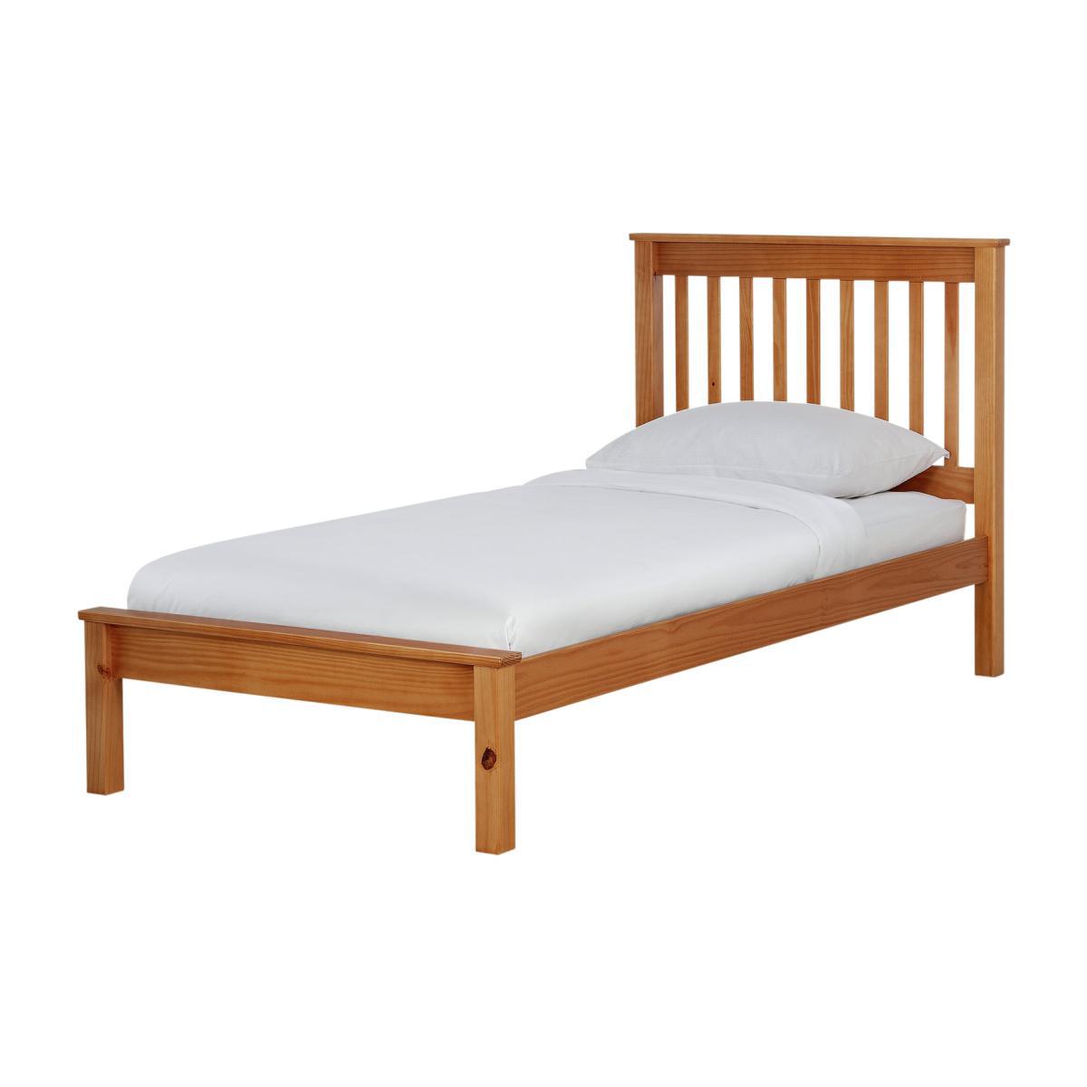 Our eye catching single bedframe is fresh and breezy and made for a good nights sleep. True to shaker origins the design of Aspley bed revolves around quality and function with a solid pine base and slats built to stand the test of time. Plump your soft pillows against the strong headboard and lean back - a perfect position for night time reading or breakfast in bed. The low foot end frame lets you tuck duvets in for a tidy and neat finish. Finished in oak effect, you can mix and match this refreshing bed frame with any existing bedroom style.