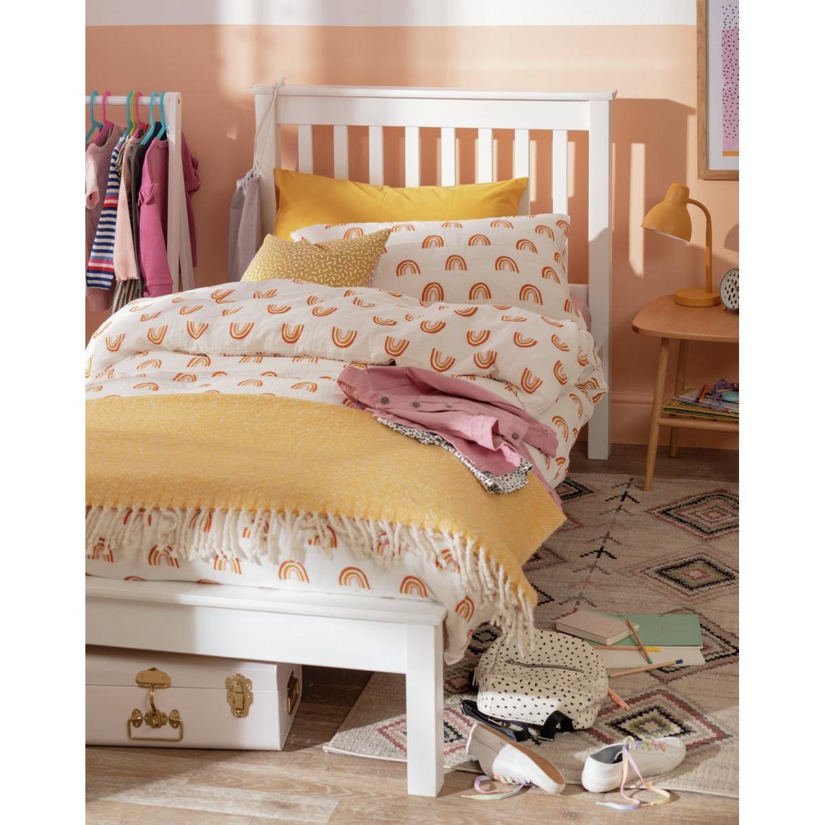 The Habitat Aspley single bed frame in white offers a clean, classic look that fits effortlessly into both modern and traditional children's bedrooms. Its straightforward design makes it versatile, pairing well with colourful or neutral bedding and allowing you to add personality with accessories like fun cushions or themed bedding sets. Practical styling tips include placing a cosy rug nearby for comfort and using under-bed storage to keep clutter out of sight. It's a sturdy, timeless piece that works well in various interior schemes, making it a practical yet stylish foundation for a child's space.