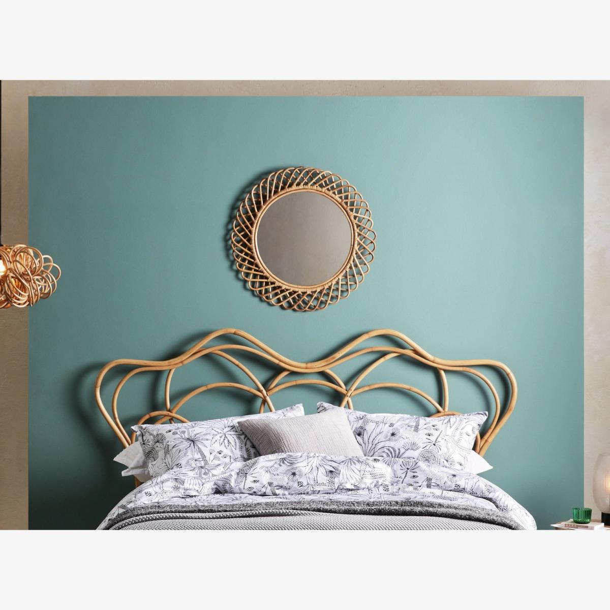 Is your double bed longing for an instant upgrade? Here it is. Our exotic natural rattan headboard is all about fluid design and organic curves. Inspired by flower petals it's eye-candy for the bedroom. Bring a natural flair to your lair with printed bed linens and some nature-inspired accessories to match the theme. Part of the Asri collection. Size W170, H126cm. Manufacturer's 1 year guarantee.