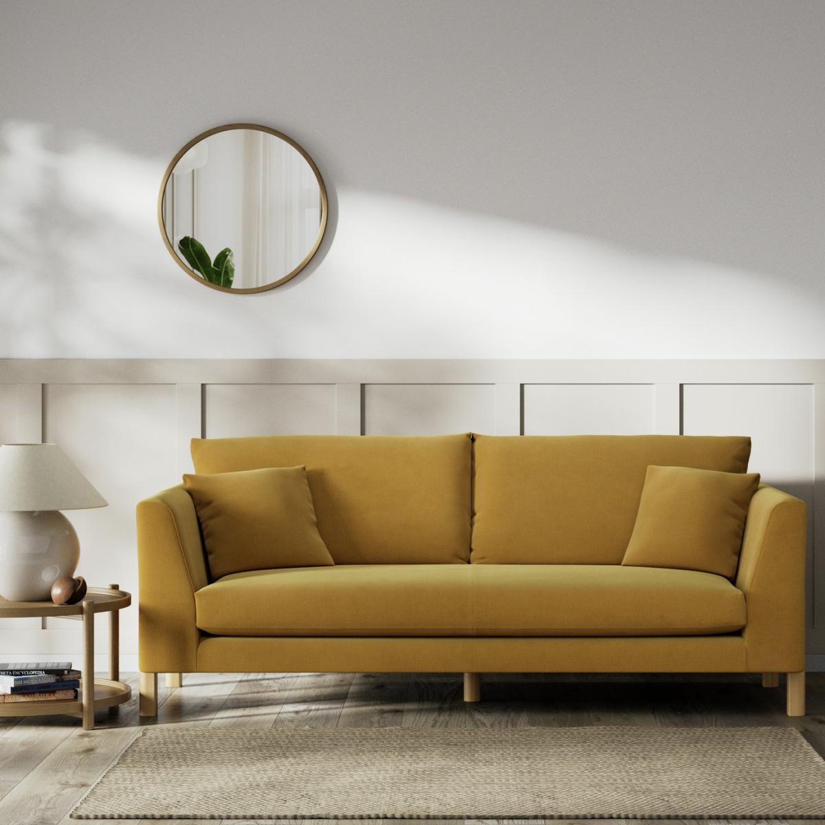 When it's made for you, you know you'll love it. Superbly blending mid-century and industrial influences the Aston 3-seater sofa with scatter cushions has showhome looks. The comfortable clean lines are emphasised by the tall, turned ash legs. Upholstered in a velvety sheen Chenille, the Aston takes on a rich, soft, textured look. The low maintenance seats are filled with high density foam core wrapped in softer foam layer to create the perfect balance of support, durability and recovery. The reversible fibre filled back cushions are smartly finished with tucked corners. Hand made to order in the UK, the Aston uses quality materials and traditional techniques for furniture that's unique to you. Available in a choice of sizes and fabrics including Aquaclean technology protection built into the yarn, which is easy to clean with just water. Part of the Aston collection. Material: Made from 100% polyester. Wooden feet - ash. Removable seats with foam and fibre filling. Removable cushion(s) with foam fibre wrap filling. Dimensions: Size H91, W213, D101cm. Floor to seat height: 49cm. Depth of seat: 65cm. Height of seat back: 42cm. Width of seating area between arms: 167cm. Height of arm rest: 73cm. Weight: 62.5kg. Packaged dimensions: Package size H61, W218, D106cm. General information: We do more than deliver your product, we unpack, set it up and take away the packaging. Manufactured in the UK using components sourced globally. Professional clean only. Plump cushions regularly to maintain shape. Manufacturer's 15 year frame guarantee.