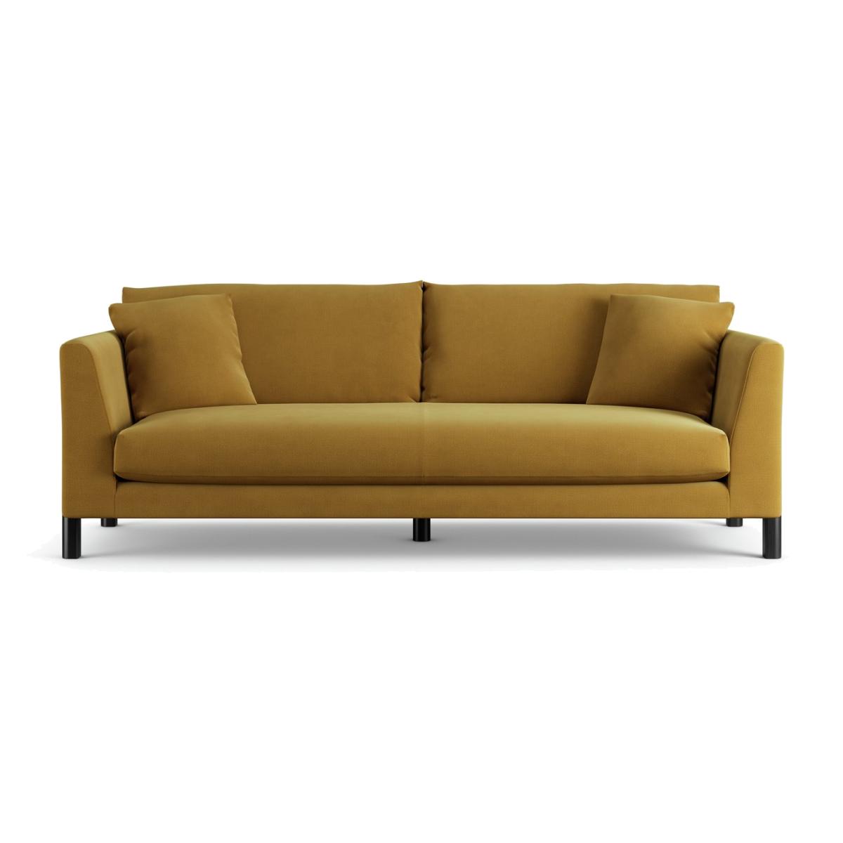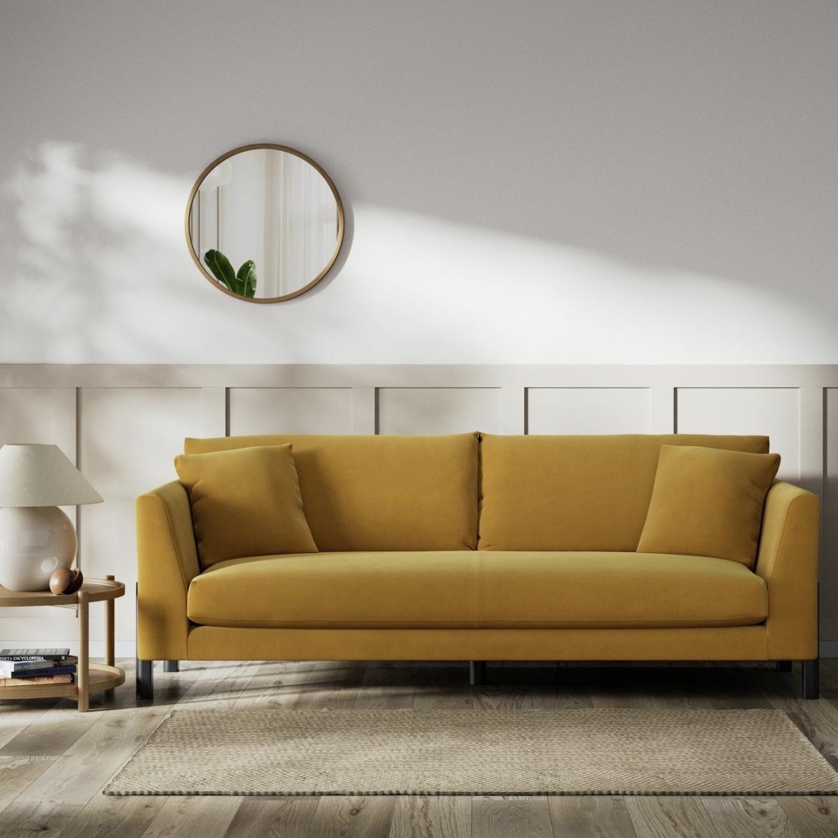 When it's made for you, you know you'll love it. Superbly blending mid-century and industrial influences the Aston 4-seater sofa with scatter cushions has showhome looks. The comfortable clean lines are emphasised by the tall, turned black legs. Upholstered in a velvety sheen Chenille, the Aston takes on a rich, soft, textured look. The low maintenance seats are filled with high density foam core wrapped in softer foam layer to create the perfect balance of support, durability and recovery. The reversible fibre filled back cushions are smartly finished with tucked corners. Hand made to order in the UK, the Aston uses quality materials and traditional techniques for furniture that's unique to you. Available in a choice of sizes and fabrics including Aquaclean technology protection built into the yarn, which is easy to clean with just water. Part of the Aston collection. Material: Made from 100% polyester. Wooden feet - black. Removable seats with foam and fibre filling. Removable cushion(s) with foam fibre wrap filling. Dimensions: Size H91, W233, D101cm. Floor to seat height: 49cm. Depth of seat: 65cm. Height of seat back: 42cm. Width of seating area between arms: 187cm. Height of arm rest: 73cm. Weight: 70kg. Packaged dimensions: Package size H61, W238, D106cm. General information: We do more than deliver your product, we unpack, set it up and take away the packaging. Manufactured in the UK using components sourced globally. Professional clean only. Plump cushions regularly to maintain shape. Manufacturer's 15 year frame guarantee.