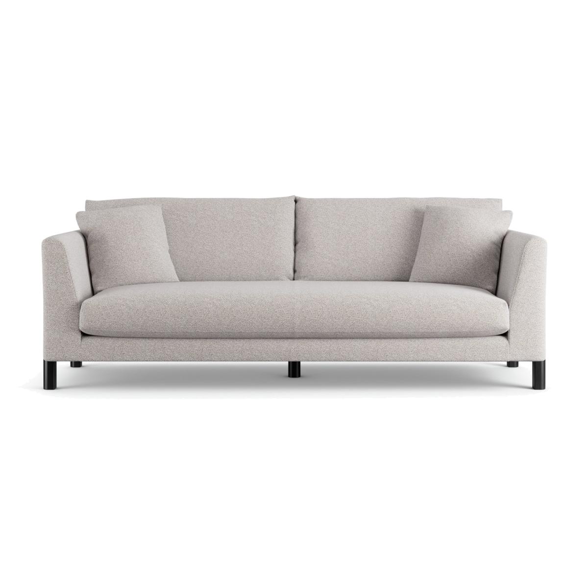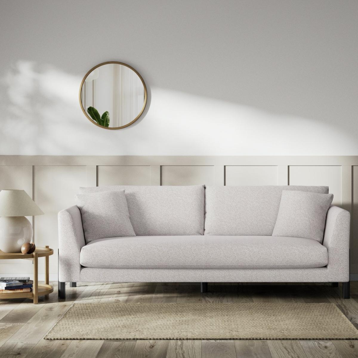 When it's made for you, you know you'll love it. Superbly blending mid-century and industrial influences the Aston 4-seater sofa with scatter cushions has showhome looks. The comfortable clean lines are emphasised by the tall, turned black legs. Upholstered in a Textured Weave, the Aston takes on a soft, tactile feel. The low maintenance seats are filled with high density foam core wrapped in softer foam layer to create the perfect balance of support, durability and recovery. The reversible fibre filled back cushions are smartly finished with tucked corners. Hand made to order in the UK, the Aston uses quality materials and traditional techniques for furniture that's unique to you. Available in a choice of sizes and fabrics including Aquaclean technology protection built into the yarn, which is easy to clean with just water. Part of the Aston collection. Material: Made from 100% polyester. Wooden feet - black. Removable seats with foam and fibre filling. Removable cushion(s) with foam fibre wrap filling. Dimensions: Size H91, W233, D101cm. Floor to seat height: 49cm. Depth of seat: 65cm. Height of seat back: 42cm. Width of seating area between arms: 187cm. Height of arm rest: 73cm. Weight: 70kg. Packaged dimensions: Package size H61, W238, D106cm. General information: We do more than deliver your product, we unpack, set it up and take away the packaging. Manufactured in the UK using components sourced globally. Professional clean only. Plump cushions regularly to maintain shape. Manufacturer's 15 year frame guarantee.