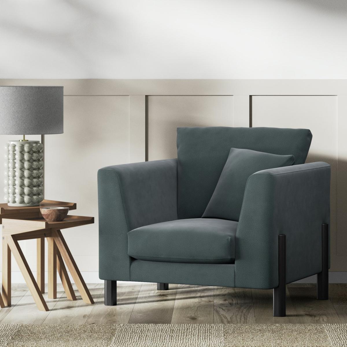 When it's made for you, you know you'll love it. Superbly blending mid-century and industrial influences the Aston armchair with a scatter cushion has showhome looks. The comfortable clean lines are emphasised by the tall, turned black legs. Upholstered in a velvety sheen Chenille, the Aston takes on a rich, soft, textured look. The low maintenance seats are filled with high density foam core wrapped in softer foam layer to create the perfect balance of support, durability and recovery. The reversible fibre filled back cushions are smartly finished with tucked corners. Handmade to order in the UK. The Aston uses quality materials and traditional techniques for furniture that's unique to you. Available in a choice of sizes and fabrics including Aquaclean technology protection built into the yarn, which is easy to clean with just water. Part of the Aston collection. Material: Made from 100% polyester. Wooden feet. Removable seat with foam filling. Removable cushion(s) with foam fibre wrap filling. Free fabric swatch available on this line. Dimensions: Size H91, W96.5, D101cm. Floor to seat height: 49cm. Depth of seat: 65cm. Height of seat back: 42cm. Width of seating area between arms: 55cm. Height of ARM rest: 73cm. Weight: 21kg. Packaged dimensions: Package size H61, W101.5, D106cm. General information: We do more than deliver your product, we unpack, set it up and take away the packaging. Manufactured in the UK using components sourced globally. Professional clean only. Plump cushions regularly to maintain shape. Manufacturer's 15 year frame guarantee.