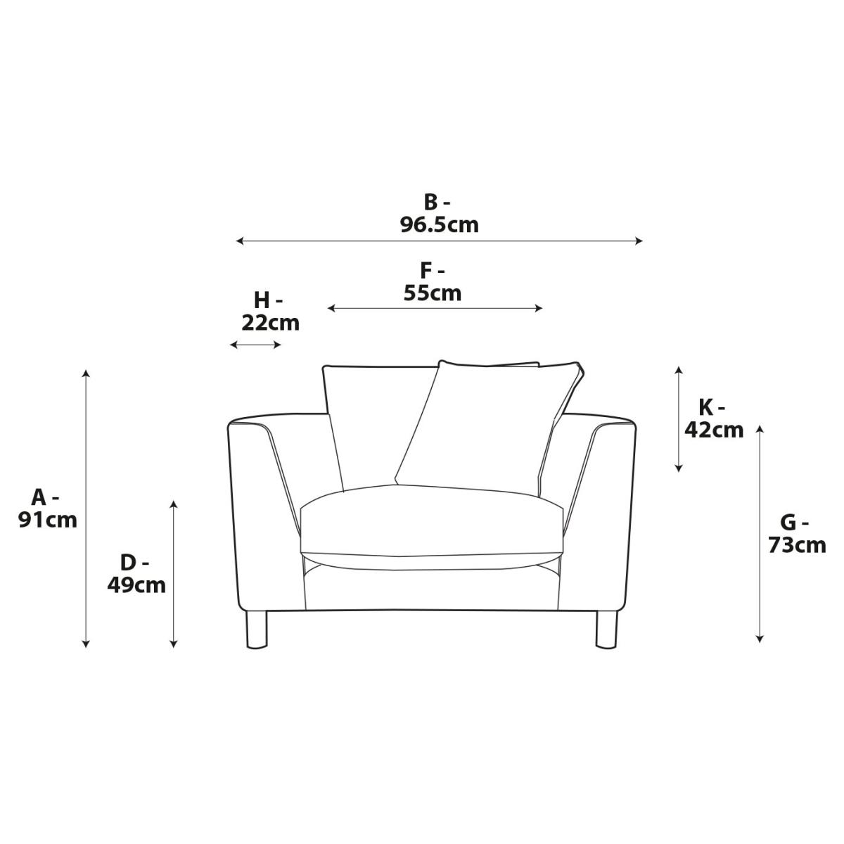 When it's made for you, you know you'll love it. Superbly blending mid-century and industrial influences the Aston armchair with a scatter cushion has showhome looks. The comfortable clean lines are emphasised by the tall, turned ash legs. Upholstered in Aquaclean Chenille, the Aston combines a soft feel with easy clean durability. The low maintenance seats are filled with high density foam core wrapped in softer foam layer to create the perfect balance of support, durability and recovery. The reversible fibre filled back cushions are smartly finished with tucked corners. Handmade to order in the UK. The Aston uses quality materials and traditional techniques for furniture that's unique to you. Available in a choice of sizes and fabrics including Aquaclean technology protection built into the yarn, which is easy to clean with just water. Part of the Aston collection. Material: Made from 100% polyester. Wooden feet. Removable seat with foam filling. Removable cushion(s) with foam fibre wrap filling. Dimensions: Size H91, W96.5, D101cm. Floor to seat height: 49cm. Depth of seat: 65cm. Height of seat back: 42cm. Width of seating area between arms: 55cm. Height of ARM rest: 73cm. Weight: 21kg. Packaged dimensions: Package size H61, W101.5, D106cm. General information: We do more than deliver your product, we unpack, set it up and take away the packaging. Manufactured in the UK using components sourced globally. Professional clean only. Plump cushions regularly to maintain shape. Manufacturer's 15 year frame guarantee.