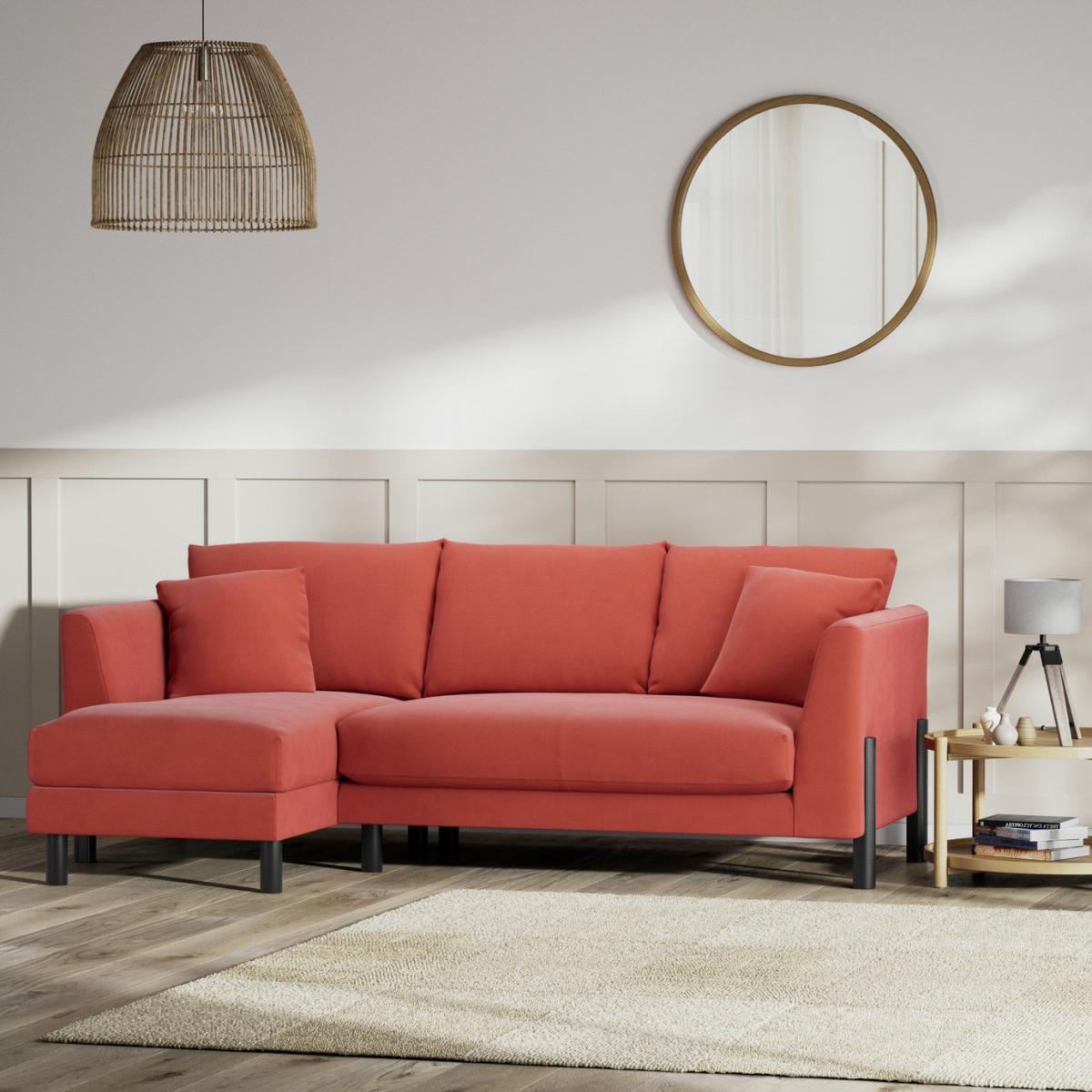 When it's made for you, you know you'll love it. Superbly blending mid-century and industrial influences the Aston 4-seater left corner chaise with scatter cushions has showhome looks. The comfortable clean lines are emphasised by the tall, turned black legs. Upholstered in a velvety sheen Chenille, the Aston takes on a rich, soft, textured look. The low maintenance seats are filled with high density foam core wrapped in softer foam layer to create the perfect balance of support, durability and recovery. The reversible fibre filled back cushions are smartly finished with tucked corners. Hand made to order in the UK, the Aston uses quality materials and traditional techniques for furniture that's unique to you. Available in a choice of sizes and fabrics including Aquaclean technology protection built into the yarn, which is easy to clean with just water. Part of the Aston collection. Left hand corner. Material: Made from 100% polyester. Wooden feet. Removable seats with foam and fibre filling. Removable cushion(s) with foam fibre wrap filling. Dimensions: Size H91, longer width 222.5, shorter width 79.5,. Floor to seat height: 49cm. Depth of seat: 65cm. Height of seat back: 42cm. Shorter seating area width between arms: 58cm. Longer seating area width between arms: 174cm. Height of arm rest: 73cm. Weight: 69kg. Packaged dimensions: Package size H61, W148, D106cm. Second package size H61, W84.5, D106cm. General information: We do more than deliver your product, we unpack, set it up and take away the packaging. Manufactured in the UK using components sourced globally. Professional clean only. Plump cushions regularly to maintain shape. Manufacturer's 15 year frame guarantee.