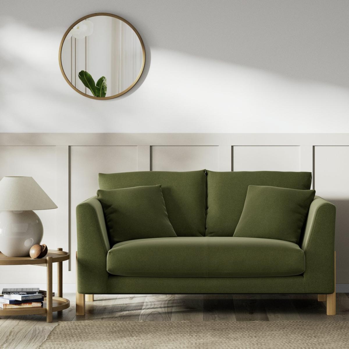 When it's made for you, you know you'll love it. Superbly blending mid-century and industrial influences the Aston 2-seater sofa with scatter cushions has showhome looks. The comfortable clean lines are emphasised by the tall, turned ash legs. Upholstered in rich Velvet, the Aston takes on a luxe look. The low maintenance seats are filled with high density foam core wrapped in softer foam layer to create the perfect balance of support, durability and recovery. The reversible fibre filled back cushions are smartly finished with tucked corners. Hand made to order in the UK, the Aston uses quality materials and traditional techniques for furniture that's unique to you. Available in a choice of sizes and fabrics including Aquaclean technology protection built into the yarn, which is easy to clean with just water. Part of the Aston collection. Material: Made from 100% recycled polyester. Wooden feet - ash. Removable seats with foam and fibre filling. Removable cushion(s) with foam fibre wrap filling. Dimensions: Size H91, W163, D101cm. Floor to seat height: 49cm. Depth of seat: 65cm. Height of seat back: 42cm. Width of seating area between arms: 117cm. Height of arm rest: 73cm. Weight: 44kg. Packaged dimensions: Package size H61, W168, D106cm. General information: We do more than deliver your product, we unpack, set it up and take away the packaging. Manufactured in the UK using components sourced globally. Professional clean only. Plump cushions regularly to maintain shape. Manufacturer's 15 year frame guarantee.