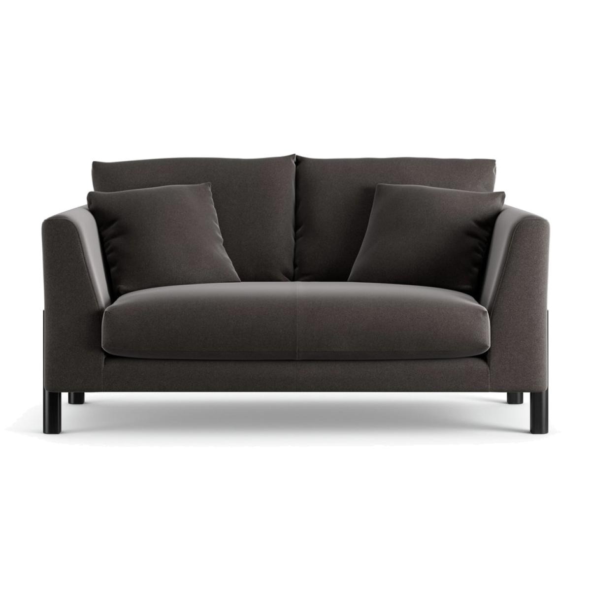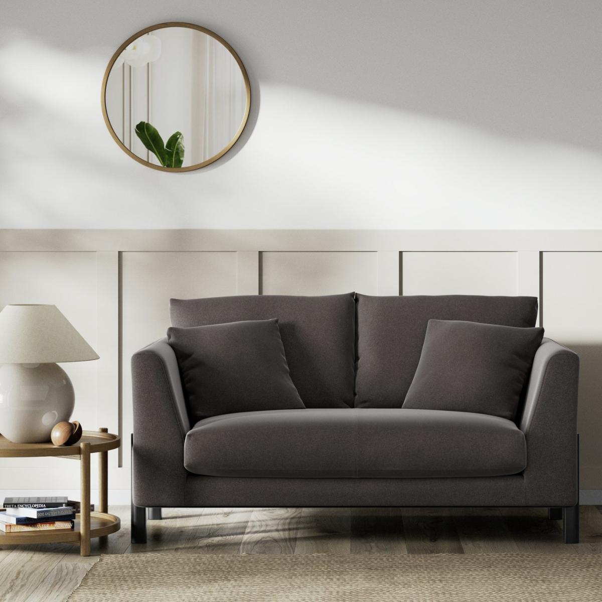 When it's made for you, you know you'll love it. Superbly blending mid-century and industrial influences the Aston 2-seater sofa with scatter cushions has showhome looks. The comfortable clean lines are emphasised by the tall, turned black legs. Upholstered in rich Velvet, the Aston takes on a luxe look. The low maintenance seats are filled with high density foam core wrapped in softer foam layer to create the perfect balance of support, durability and recovery. The reversible fibre filled back cushions are smartly finished with tucked corners. Hand made to order in the UK, the Aston uses quality materials and traditional techniques for furniture that's unique to you. Available in a choice of sizes and fabrics including Aquaclean technology protection built into the yarn, which is easy to clean with just water. Part of the Aston collection. Material: Made from 100% recycled polyester. Wooden feet - black. Removable seats with foam and fibre filling. Removable cushion(s) with foam fibre wrap filling. Dimensions: Size H91, W163, D101cm. Floor to seat height: 49cm. Depth of seat: 65cm. Height of seat back: 42cm. Width of seating area between arms: 117cm. Height of arm rest: 73cm. Weight: 44kg. Packaged dimensions: Package size H61, W168, D106cm. General information: We do more than deliver your product, we unpack, set it up and take away the packaging. Manufactured in the UK using components sourced globally. Professional clean only. Plump cushions regularly to maintain shape. Manufacturer's 15 year frame guarantee.