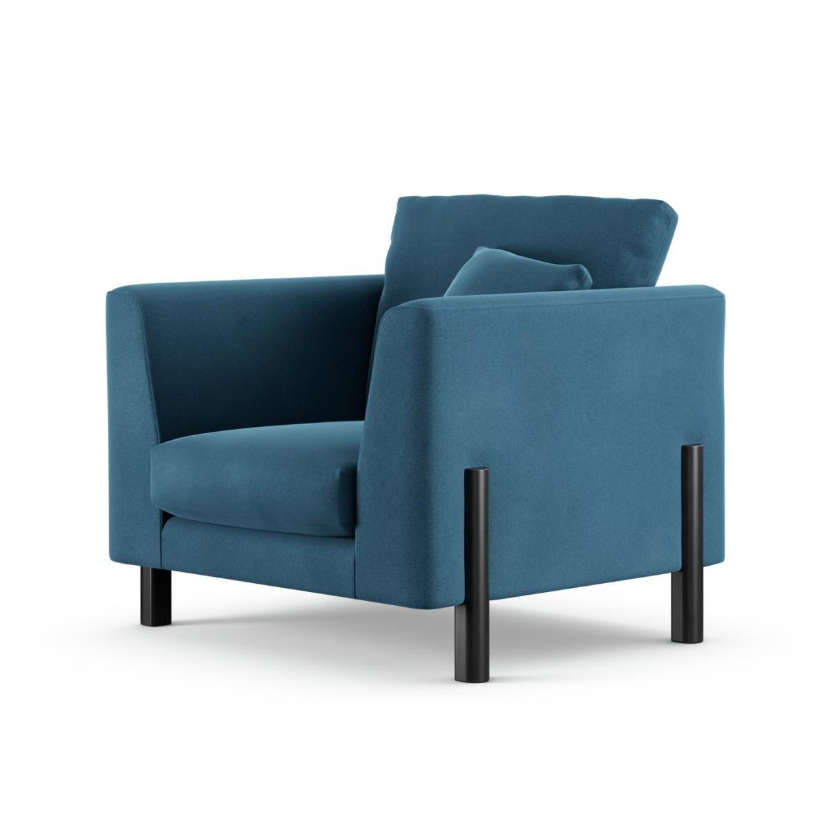 When it's made for you, you know you'll love it. Superbly blending mid-century and industrial influences the Aston armchair with a scatter cushion has showhome looks. The comfortable clean lines are emphasised by the tall, turned black legs. Upholstered in rich Velvet, the Aston takes on a luxe look. The low maintenance seats are filled with high density foam core wrapped in softer foam layer to create the perfect balance of support, durability and recovery. The reversible fibre filled back cushions are smartly finished with tucked corners. Handmade to order in the UK. The Aston uses quality materials and traditional techniques for furniture that's unique to you. Available in a choice of sizes and fabrics including Aquaclean technology protection built into the yarn, which is easy to clean with just water. Part of the Aston collection. Material: Made from 100% recycled polyester. Wooden feet. Removable seat with foam filling. Removable cushion(s) with foam fibre wrap filling. Free fabric swatch available on this line. Dimensions: Size H91, W96.5, D101cm. Floor to seat height: 49cm. Depth of seat: 65cm. Height of seat back: 42cm. Width of seating area between arms: 55cm. Height of ARM rest: 73cm. Weight: 21kg. Packaged dimensions: Package size H61, W101.5, D106cm. General information: We do more than deliver your product, we unpack, set it up and take away the packaging. Manufactured in the UK using components sourced globally. Professional clean only. Plump cushions regularly to maintain shape. Manufacturer's 15 year frame guarantee.