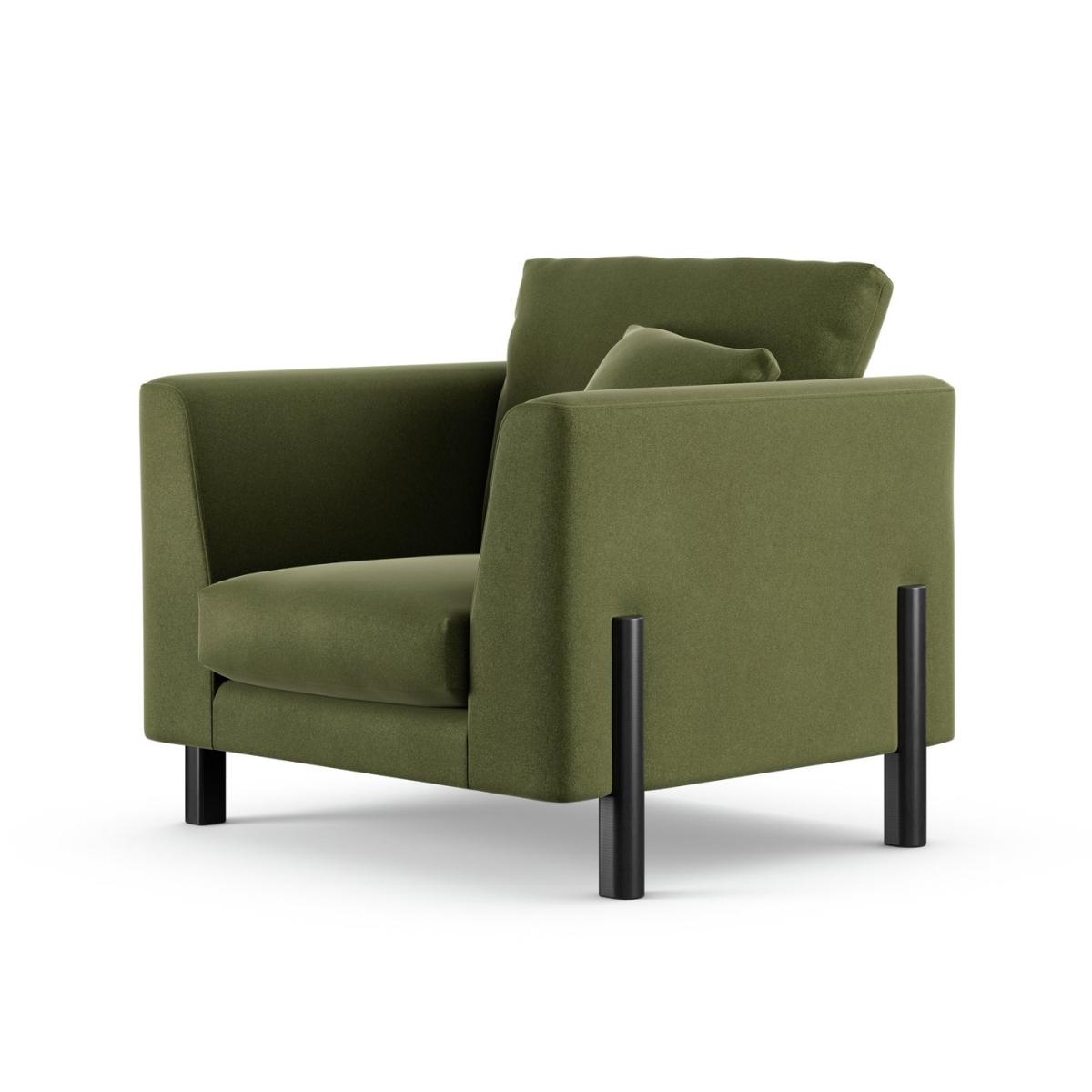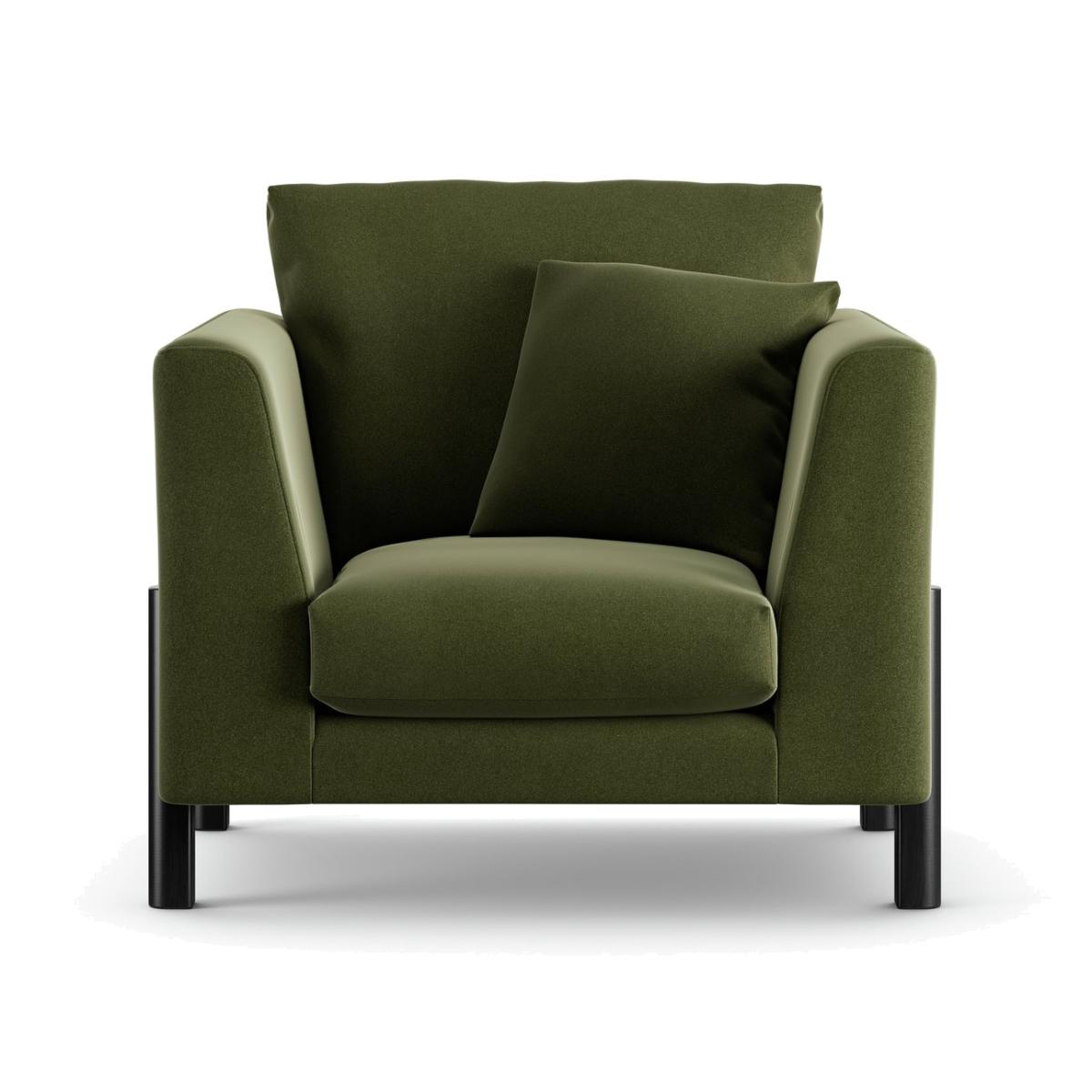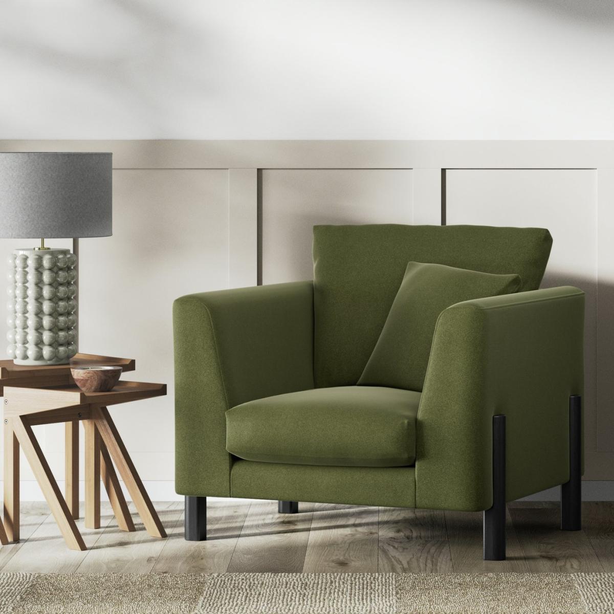 When it's made for you, you know you'll love it. Superbly blending mid-century and industrial influences the Aston armchair with a scatter cushion has showhome looks. The comfortable clean lines are emphasised by the tall, turned black legs. Upholstered in rich Velvet, the Aston takes on a luxe look. The low maintenance seats are filled with high density foam core wrapped in softer foam layer to create the perfect balance of support, durability and recovery. The reversible fibre filled back cushions are smartly finished with tucked corners. Handmade to order in the UK. The Aston uses quality materials and traditional techniques for furniture that's unique to you. Available in a choice of sizes and fabrics including Aquaclean technology protection built into the yarn, which is easy to clean with just water. Part of the Aston collection. Material: Made from 100% recycled polyester. Wooden feet. Removable seat with foam filling. Removable cushion(s) with foam fibre wrap filling. Free fabric swatch available on this line. Dimensions: Size H91, W96.5, D101cm. Floor to seat height: 49cm. Depth of seat: 65cm. Height of seat back: 42cm. Width of seating area between arms: 55cm. Height of ARM rest: 73cm. Weight: 21kg. Packaged dimensions: Package size H61, W101.5, D106cm. General information: We do more than deliver your product, we unpack, set it up and take away the packaging. Manufactured in the UK using components sourced globally. Professional clean only. Plump cushions regularly to maintain shape. Manufacturer's 15 year frame guarantee.