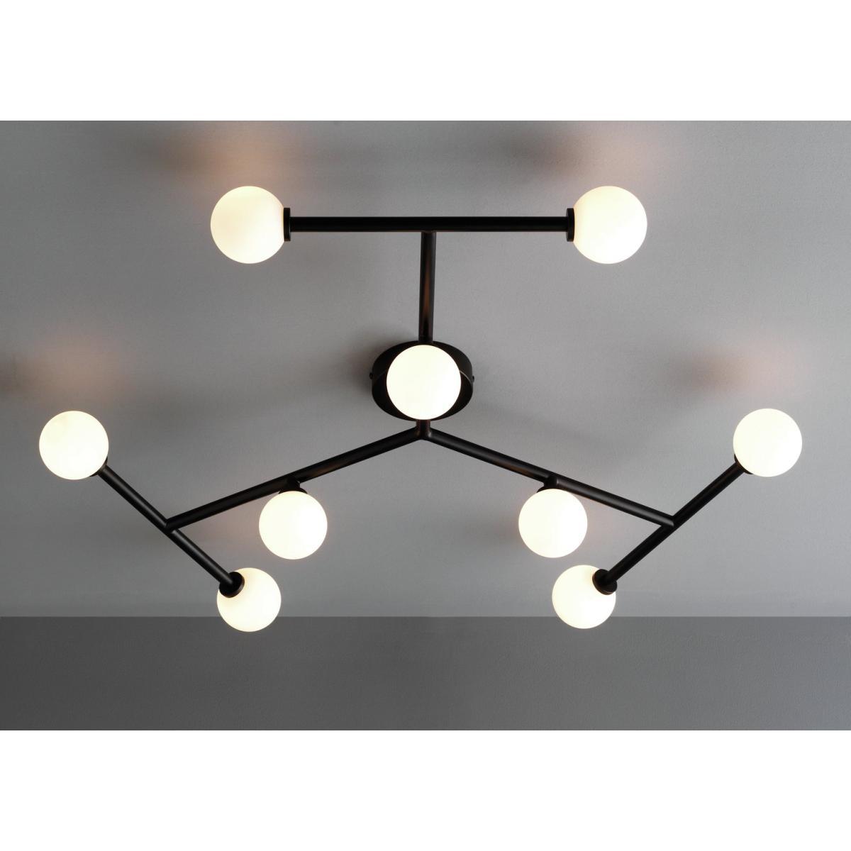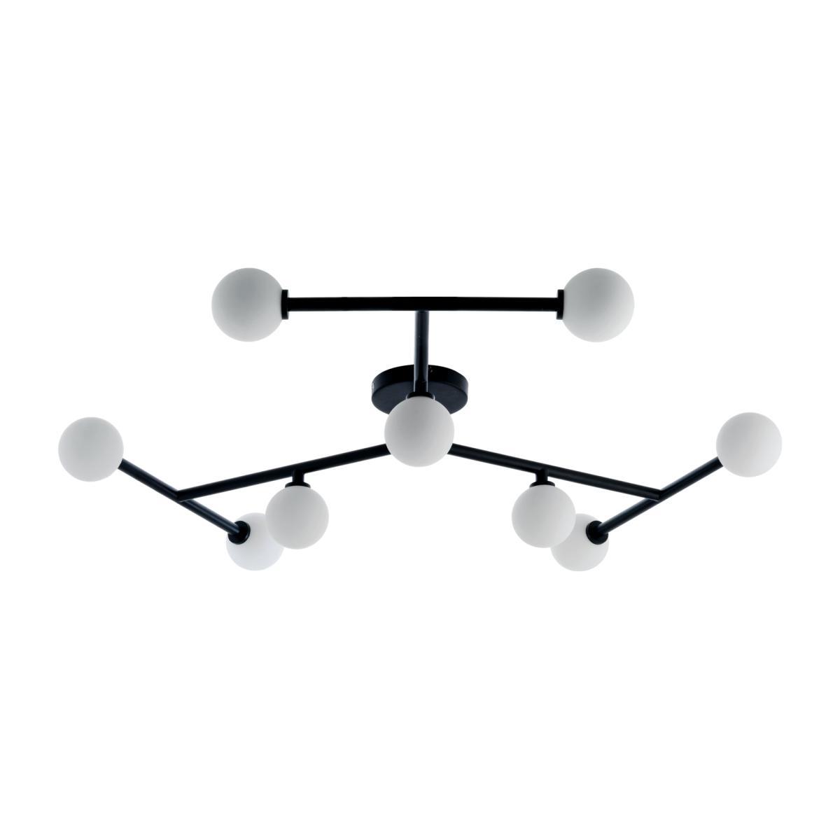 The sculptural Astrid large black metal and glass LED ceiling light is a statement design that works particularly well with lower ceilings. The contemporary light emits a soft glow through its opal glass shades and is available in other sizes and in black metal.