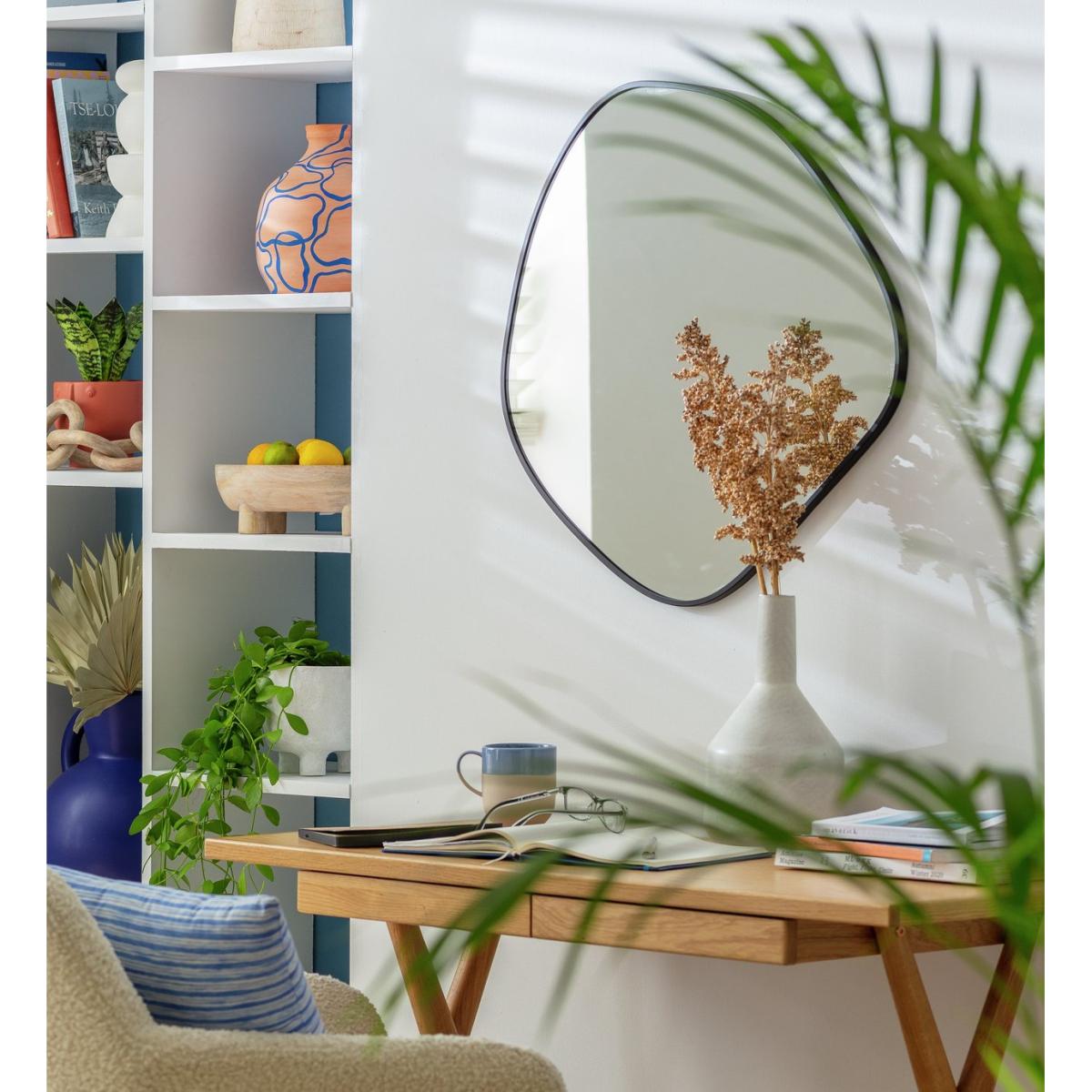 Perfectly imperfect. This asymmetric wall mirror is full of curvy character. Hang it in a bathroom or hallway for a dash of escapism. We love its organic fluid form and laidback look captured in a black metal frame. Wonderfully wavy wall art. Bring more of the Med home with soft furnishings and textiles in chalky white, sea blue and warm terracotta tones. Size H60, W59.7, D1.4cm. Decorative. Metal. Keyhole. Glass mirror. Wall mounted mirror. Can be hung horizontally or vertically. 3.93kg. Fully assembled. Distance between fixings 52.1cm. General information: We are excited to be welcoming some of our favourite HOME products into the Habitat range. Your product may arrive in Habitat or HOME packaging.