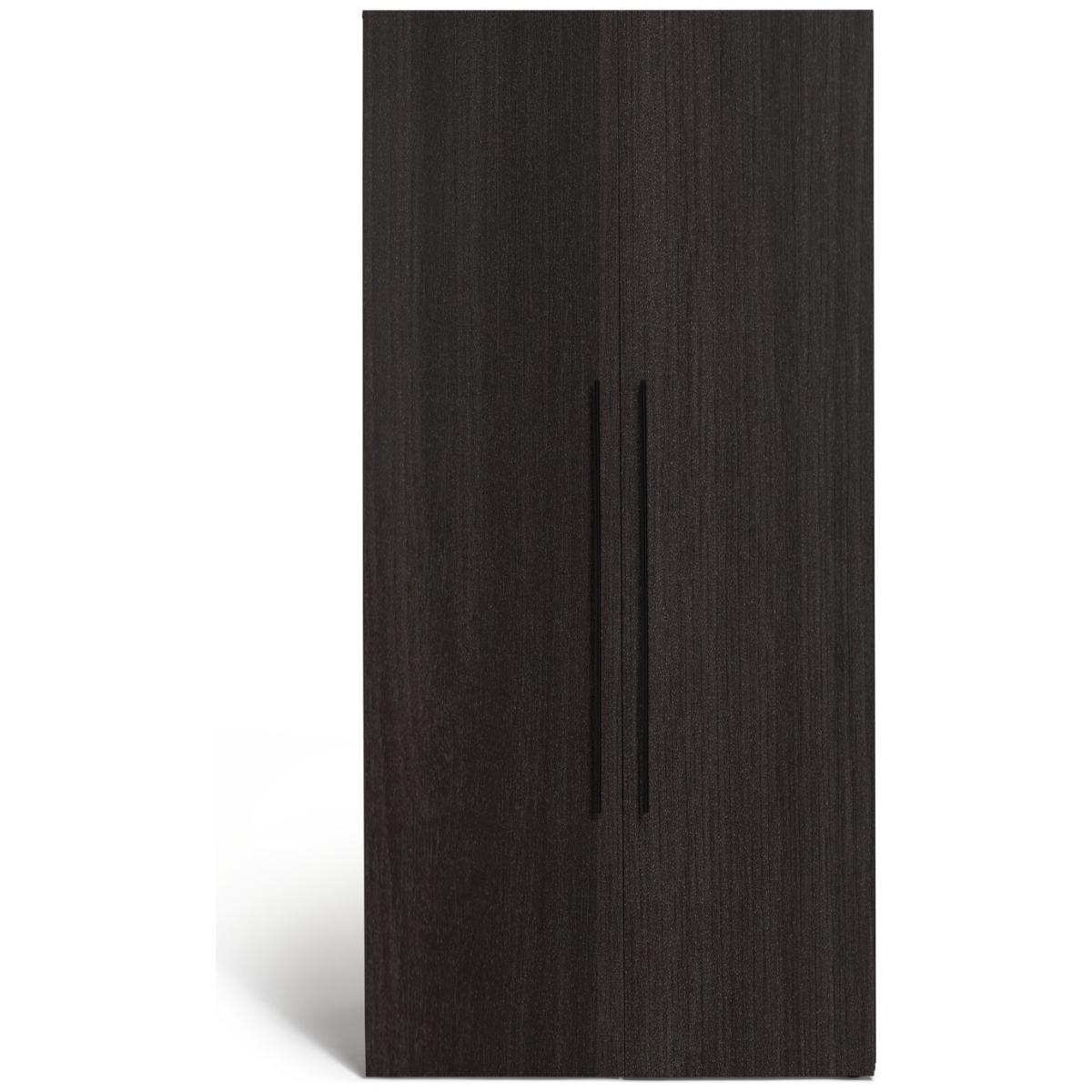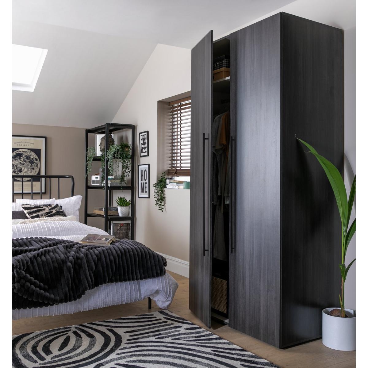 Say hello to Atlas. A modern contemporary 2-door wardrobe with a massive storage capability. Standing proud at an impressive 212cms tall, 100cms wide and 61cm deep. Atlas comes with an adjustable shelf and 2 metal hanging rails which can be assembled for full hanging, perfect for longer dresses, or double hanging, which is suitable for jackets, shirts and tops. You choose the interior storage layout that fits your needs. The exterior has a black and brown wood veneer and the inside is linen effect interoior. We have Atlas wardrobe inserts available (sold separately). These add-ons are great for organising your wardrobe or perfect if you don't have the floor space for additional furniture. Type Atlas into the search bar to see our internal shelving units, internal chest of drawers and shelf packs. Part of the Atlas collection. Made of wood effect. Metal handles. 2 doors. 2 adjustable hanging rails. Hanging rail holds up to 14kg. 1 adjustable shelf. Self-assembly - 2 people recommended. If this product is over 60cm high it must be securely attached to the wall to prevent overturning. Dimensions: Size H212, W100, D61cm. Internal hanging space H171, W96.8, D59cm. Handle size: L85, W1cm. Weight 70kg. Package Dimensions: Package 1 dimensions: H215, W60, D9cm. Package 1 weight: 49kg. Package 2 dimensions: H219, W51, D3cm. Package 2 weight: 21.5kg. FSC certified meaning the materials used for this product are responsibly sourced. General information: We are excited to be welcoming some of our favourite HOME products into the Habitat range. Your product may arrive in Habitat or HOME packaging. Manufacturer's 1 year guarantee.