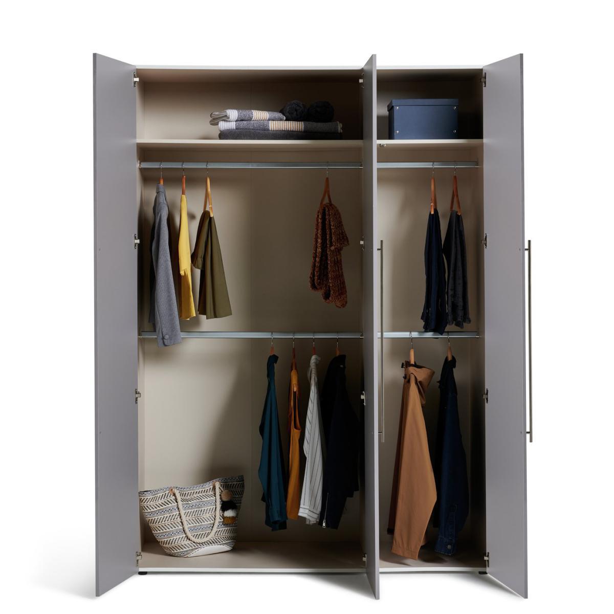 Atlas offers a modern contemporary look that has a truly massive storage capability. The 3-door wardrobe stands proud at an impressive 212cms tall, 150cms wide and 61cm deep. Each wardrobe is supplied with an adjustable shelf and 4 metal hanging rails, which can be assembled for full hanging, perfect for longer dresses or double hanging, which is suitable for jackets, shirts and tops. You can choose the interior storage layout that fits your needs. The interior is finished in a warm beige colour.