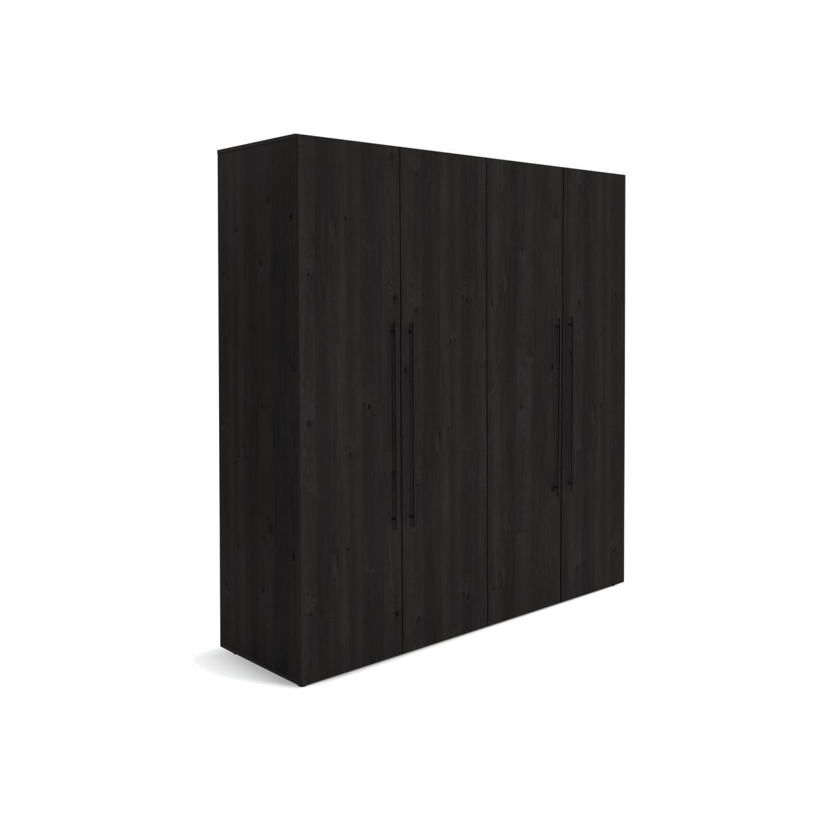 Looking for a roomy 4-door wardrobe? Then meet Atlas. With 4 adjustable rails and 2 shelves already included, and at 200cm wide, you've plenty of storage. Finished in black and brown with black bar handles. Limited on space? Then treat yourself to some internal drawers. Just search Atlas to find add-ons that are the perfect fit. Part of the Atlas collection. Made of particleboard. Metal handles. 4 doors. 4 adjustable hanging rails. Hanging rail holds up to 19kg. 2 adjustable shelves. Self-assembly - 2 people recommended (includes wall fixings). If this product is over 60cm high it must be securely attached to the wall to prevent overturning. Dimensions: Size H202.4, W200, D60.9cm. Internal hanging space H196, W96.8, D59.1cm. Handle size: L84.8, W1cm. Weight 168kg. Package Dimensions: Package 1 dimensions: H8.8, W216.6, D60.7cm. Package 1 weight: 49kg. Package 2 dimensions: H3.7, W211.7, D50.2cm. Package 2 weight: 21kg. FSC certified meaning the materials used for this product are responsibly sourced. General information: We are excited to be welcoming some of our favourite HOME products into the Habitat range. Your product may arrive in Habitat or HOME packaging.