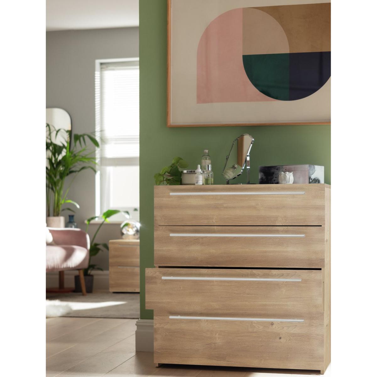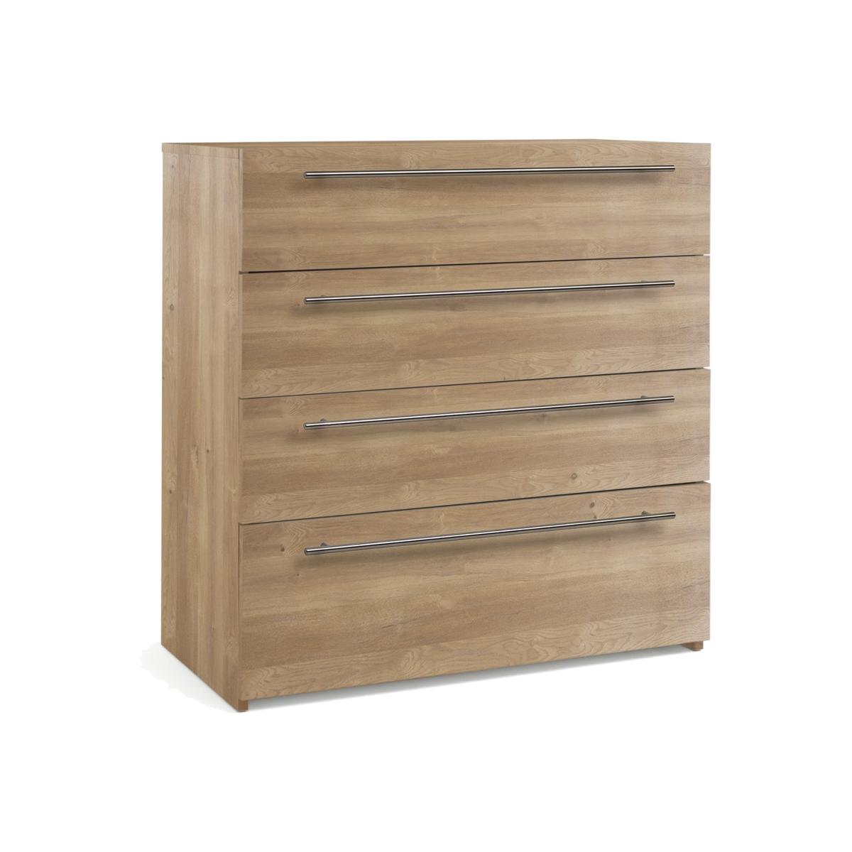 Bedroom tidy. Our chest makes it easier to keep your room free of clothes and clutter. With 4 deep drawers (and an extra deep one at the bottom) chunky knits, sweatshirts and bulky items disappear in a flash. Finished with oak looks and long line chrome style handles. Plus, glide and slide metal runners that offer a smooth, quiet close. Made in the UK. Part of the Atlas collection. Made of particleboard. Metal handles. 4 drawers with metal runners. Self-assembly - 2 people recommended (includes wall fixings). If this product is over 60cm high it must be securely attached to the wall to prevent overturning. Dimensions: Size H86, W79.5, D41.5cm. Internal drawer H11, W71.2, D35.5cm. Large internal drawer H15.1, W71.2, D35.5cm. Handle size: L62, W1cm. Weight 28kg. Package Dimensions: FSC certified meaning the materials used for this product are responsibly sourced. General information: We are excited to be welcoming some of our favourite HOME products into the Habitat range. Your product may arrive in Habitat or HOME packaging.