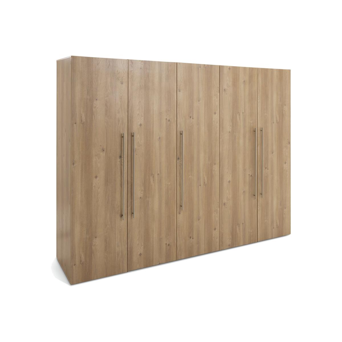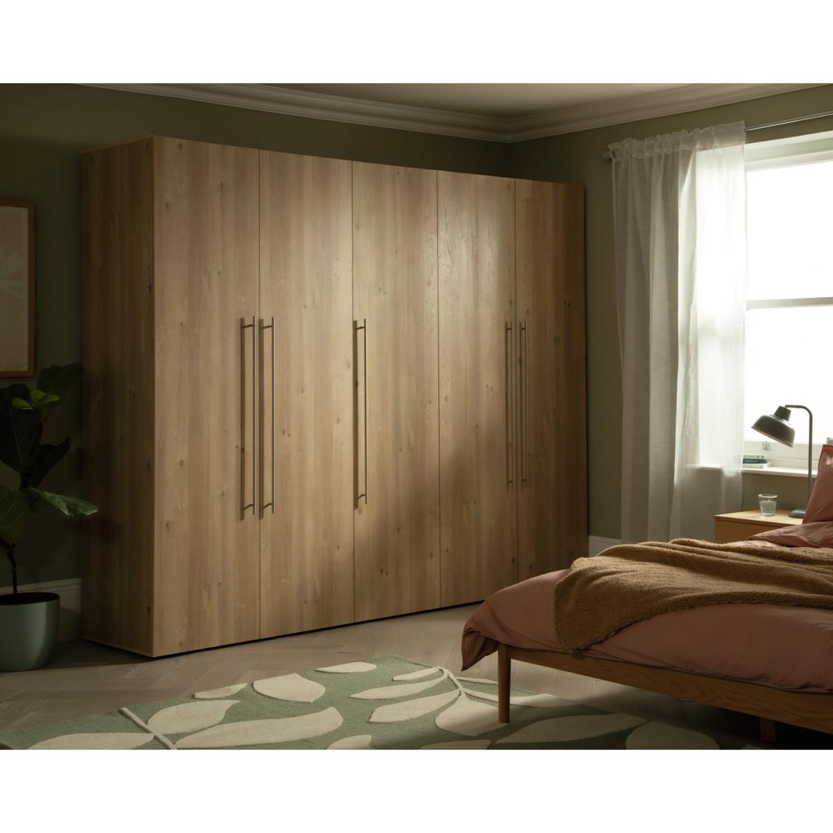 Looking for a roomy 5-door wardrobe? Then meet Atlas. With 6 adjustable rails and 3 shelves already included, and at 250cm wide, you've plenty of storage. Finished in warm oak with chrome bar handles. Limited on space? Then treat yourself to some internal drawers. Just search Atlas to find add-ons that are the perfect fit. Part of the Atlas collection. Made of particleboard. Metal handles. 5 doors. 6 adjustable hanging rails. Hanging rail holds up to 19kg. 3 adjustable shelves. Self-assembly - 2 people recommended (includes wall fixings). If this product is over 60cm high it must be securely attached to the wall to prevent overturning. Dimensions: Size H202.4, W250, D60.9cm. Internal hanging space H196, W96.8, D59.1cm. Handle size: L84.8, W1cm. Weight 180kg. Package Dimensions: FSC certified meaning the materials used for this product are responsibly sourced. General information: We are excited to be welcoming some of our favourite HOME products into the Habitat range. Your product may arrive in Habitat or HOME packaging.