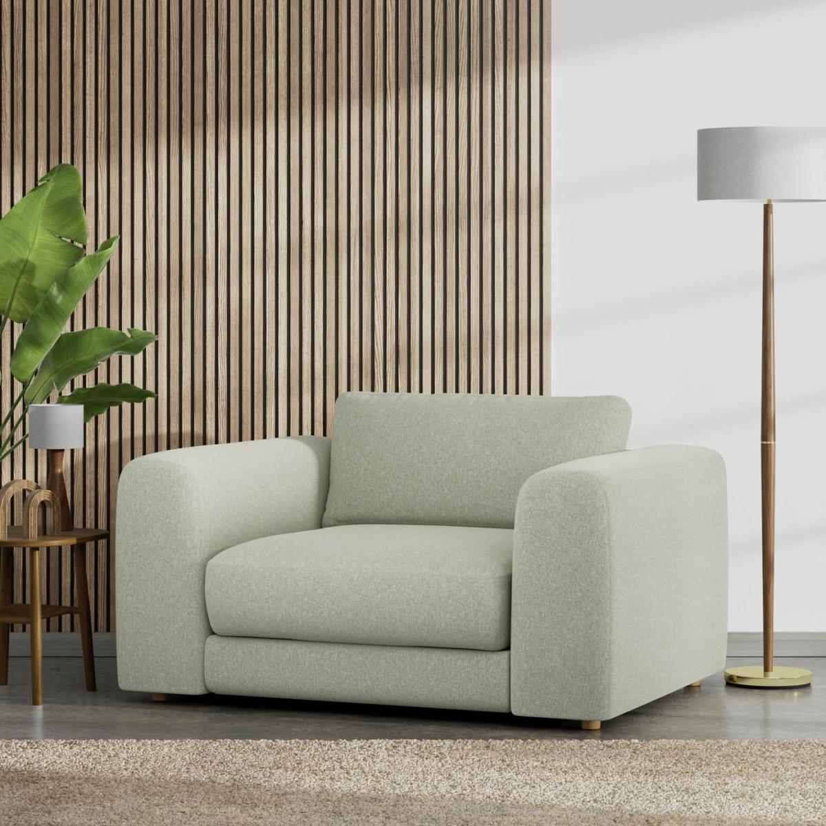 When it's made for you, you know you'll love it. Deeply inviting, the Ayr cuddle chair has a generous low and boxy style that combines classic comfort with contemporary living. Upholstered in a contemporary Flat Weave, the Ayr has a smooth but tonal look. From the arms wide enough to rest a laptop, to the generously padded seat and cushions, this cuddle chair is all about laid back lounging. Offering relaxed comfort, Ayr cushions use high density foam, further wrapped in a thick quilted fibre wrap to create the perfect balance of support, durability and recovery. Handmade to order in the UK. The Ayr uses quality materials and traditional techniques for furniture that's unique to you. Available in a choice of sizes and fabrics including Aquaclean technology protection built into the yarn, which is easy to clean with just water. Part of the Ayr collection. Material: Made from 100% polyester. Wooden feet. Removable seat with foam fibre wrap filling. Removable cushion(s) with foam fibre wrap filling. Dimensions: Size H83, W143, D113cm. Floor to seat height: 44cm. Depth of seat: 75cm. Height of seat back: 43cm. Width of seating area between arms: 83cm. Height of ARM rest: 70cm. Weight: 61kg. Packaged dimensions: Package size H69, W148, D118cm. General information: We do more than deliver your product, we unpack, set it up and take away the packaging. Manufactured in the UK using components sourced globally. Professional clean only. Plump cushions regularly to maintain shape. Manufacturer's 15 year frame guarantee.