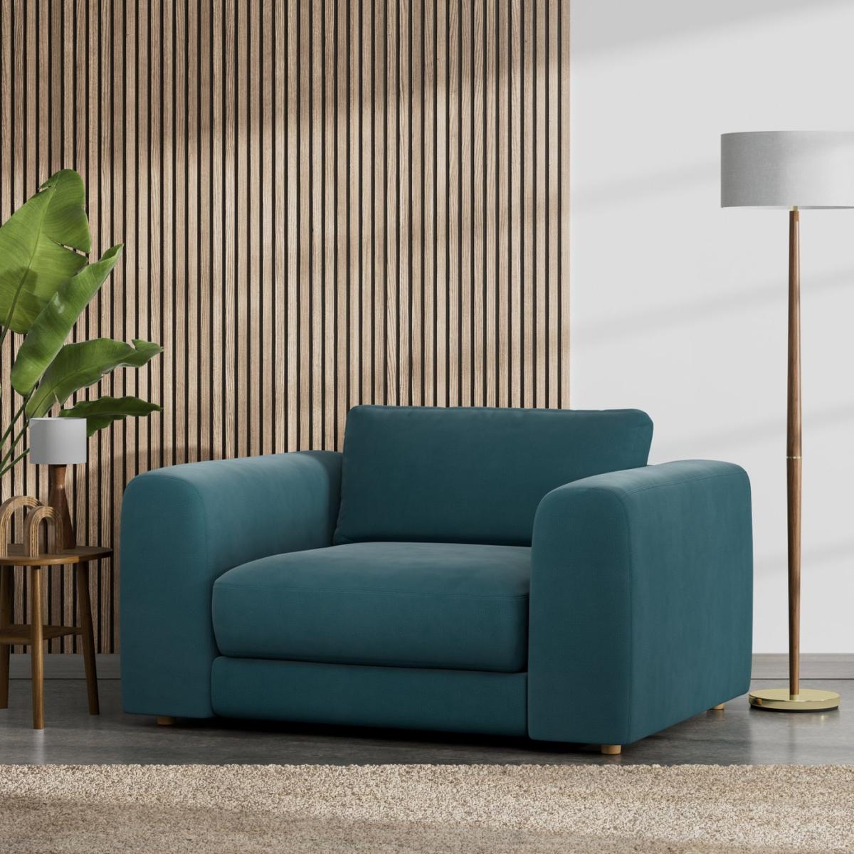 When it's made for you, you know you'll love it. Deeply inviting, the Ayr cuddle chair has a generous low and boxy style that combines classic comfort with contemporary living. Upholstered in a velvety sheen chenille, the Ayr takes on a rich, soft, textured look. From the arms wide enough to rest a laptop, to the generously padded seat and cushions, this cuddle chair is all about laid back lounging. Offering relaxed comfort, Ayr cushions use high density foam, further wrapped in a thick quilted fibre wrap to create the perfect balance of support, durability and recovery. Handmade to order in the UK. The Ayr uses quality materials and traditional techniques for furniture thats unique to you. Available in a choice of sizes and fabrics including Aquaclean technology protection built into the yarn, which is easy to clean with just water. Part of the Ayr collection. Material: Made from 100% polyester. Wooden feet. Removable seat with foam fibre wrap filling. Removable cushion(s) with foam fibre wrap filling. Dimensions: Size H83, W143, D113cm. Floor to seat height: 44cm. Depth of seat: 75cm. Height of seat back: 43cm. Width of seating area between arms: 83cm. Height of arm rest: 70cm. Weight: 61kg. Packaged dimensions: Package size H69, W148, D118cm. General information: FSC certified meaning the materials used for this product are responsibly sourced. We do more than deliver your product, we unpack, set it up and take away the packaging. Manufactured in the UK using components sourced globally. Professional clean only. Plump cushions regularly to maintain shape. Manufacturer's 15 year frame guarantee.