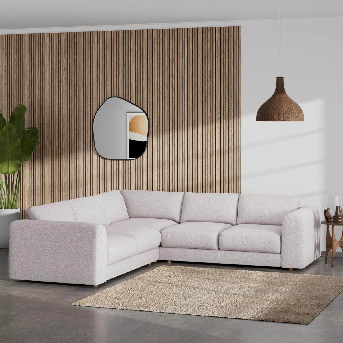 When it's made for you, you know you'll love it. This family friendly sofa loves company. Deeply inviting, the Ayr 4-seater corner sofa has a generous low and boxy style that combines classic comfort with contemporary living. In a rich velvet, the Ayr takes on a luxe look. From the arms wide enough to rest a laptop, to the generously padded seats and cushions, this sofa is all about laid back lounging. Ayr comes with a detached footstool which you can place either of the sofa to create a reversible chaise. Offering relaxed comfort, Ayr cushions use high density foam, further wrapped in a thick quilted fibre wrap to create the perfect balance of support, durability and recovery. Handmade to order in the UK. The Ayr uses quality materials and traditional techniques for furniture that's unique to you. Available in a choice of sizes and fabrics including Aquaclean technology protection built into the yarn, which is easy to clean with just water. Part of the Ayr collection. Reversible corner. Material: Made from 100% polyester. Wooden feet. Removable seats with foam fibre wrap filling. Removable cushion(s) with foam fibre wrap filling. Dimensions: Size H83, longer width 286, shorter width 286,. Floor to seat height: 44cm. Depth of seat: 75cm. Height of seat back: 43cm. Shorter seating area width between arms: 217cm. Longer seating area width between arms: 217cm. Height of arm rest: 70cm. Weight: 158kg. Packaged dimensions: Package size H88, W181, D118cm. Second package size H69, W115, D115cm. General information: FSC certified meaning the materials used for this product are responsibly sourced. We do more than deliver your product, we unpack, set it up and take away the packaging. Manufactured in the UK using components sourced globally. Professional clean only. Plump cushions regularly to maintain shape. Manufacturer's 15 year frame guarantee.