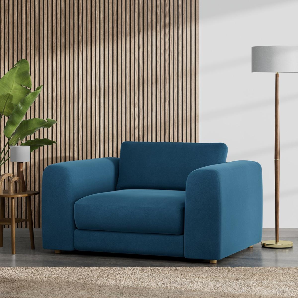 When it's made for you, you know you'll love it. Deeply inviting, the Ayr cuddle chair has a generous low and boxy style that combines classic comfort with contemporary living. Upholstered in a rich velvet, the Ayr takes on a luxe look. From the arms wide enough to rest a laptop, to the generously padded seat and cushions, this cuddle chair is all about laid back lounging. Offering relaxed comfort, Ayr cushions use high density foam, further wrapped in a thick quilted fibre wrap to create the perfect balance of support, durability and recovery. Handmade to order in the UK. The Ayr uses quality materials and traditional techniques for furniture thats unique to you. Available in a choice of sizes and fabrics including Aquaclean technology protection built into the yarn, which is easy to clean with just water. Part of the Ayr collection. Material: Made from 100% recycled polyester. Wooden feet. Removable seat with foam fibre wrap filling. Removable cushion(s) with foam fibre wrap filling. Dimensions: Size H83, W143, D113cm. Floor to seat height: 44cm. Depth of seat: 75cm. Height of seat back: 43cm. Width of seating area between arms: 83cm. Height of arm rest: 70cm. Weight: 61kg. Packaged dimensions: Package size H69, W148, D118cm. General information: FSC certified meaning the materials used for this product are responsibly sourced. We do more than deliver your product, we unpack, set it up and take away the packaging. Manufactured in the UK using components sourced globally. Professional clean only. Plump cushions regularly to maintain shape. Manufacturer's 15 year frame guarantee.