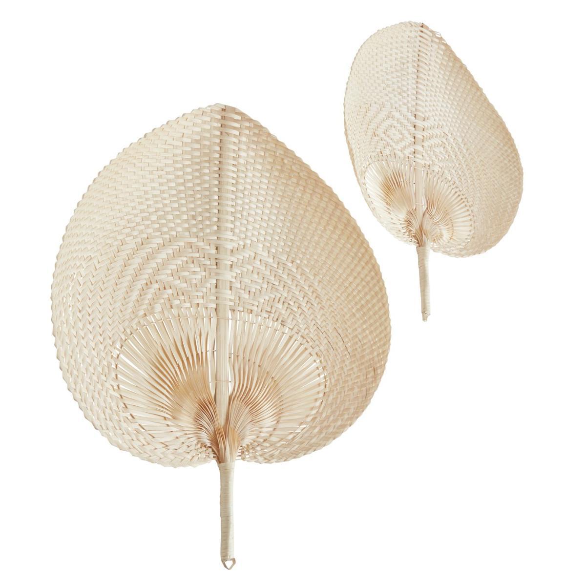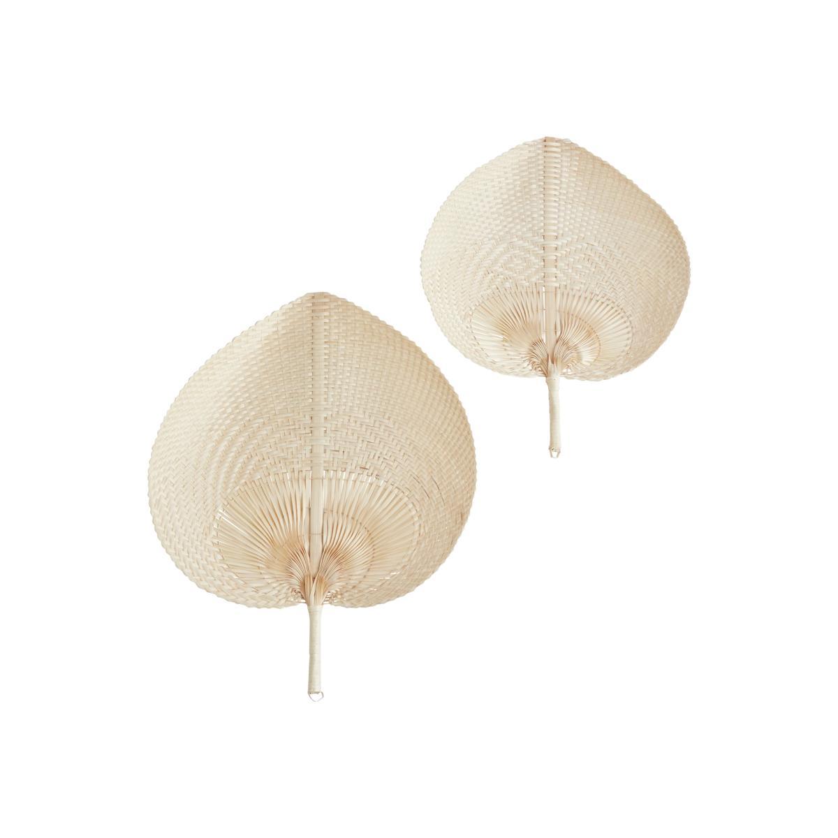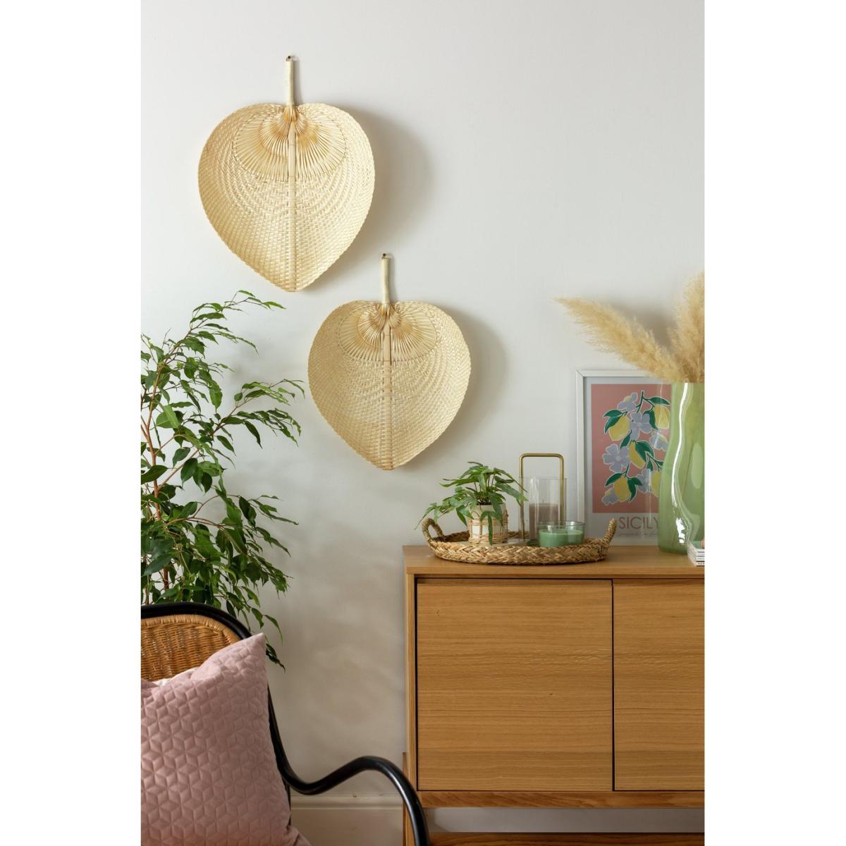 Simply fantastic. Our pretty pair of heart-shaped fans puts a fresh twist on a retro look. Skillfully woven from braided bamboo, they make a striking statement. Display on the wall in your lounge, bedroom or kitchen. Easy to hang using the loop in the handle, fasten in place and get ready to stun. They'll stand out well against neutral walls and look fabulous paired with vintage prints and a plant or two. Naturally nostalgic.