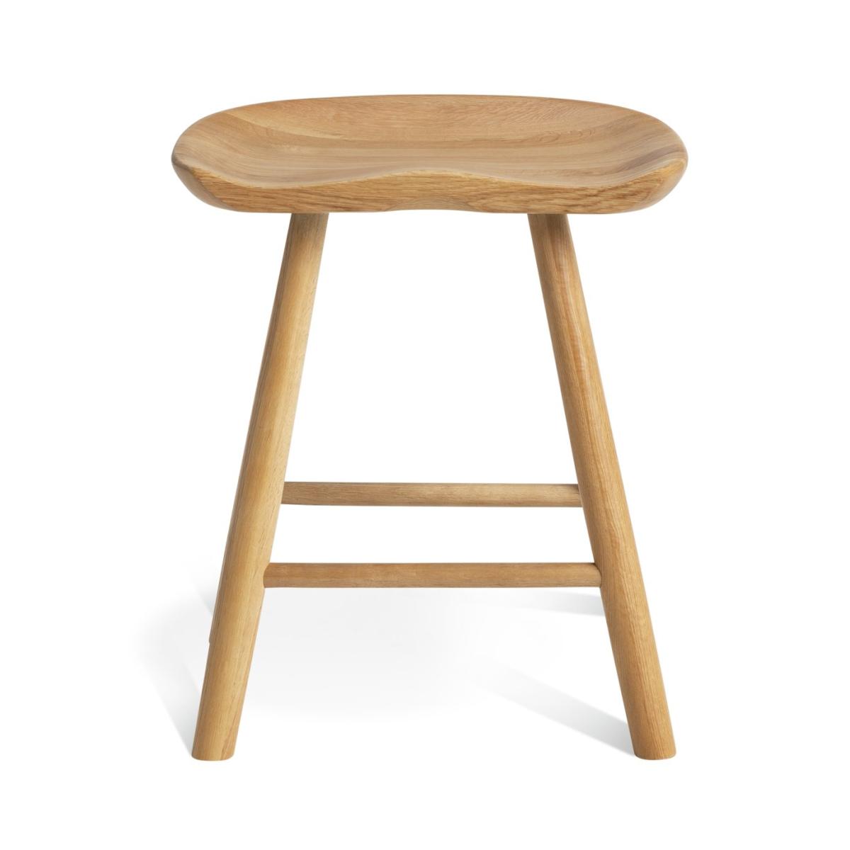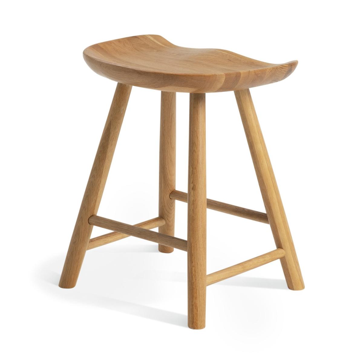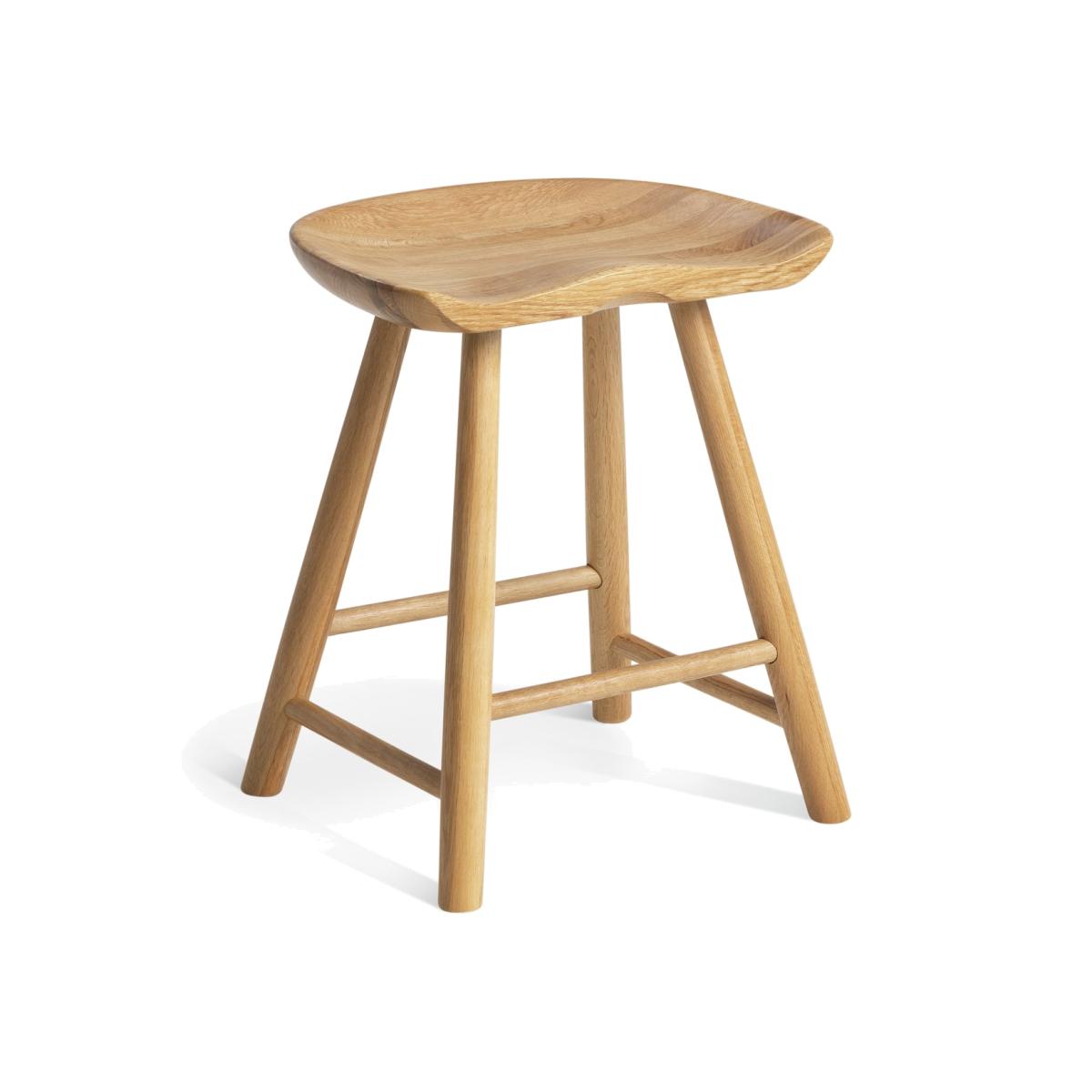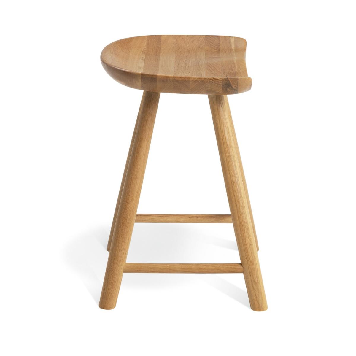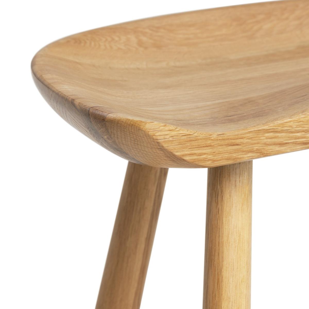 Our Barnwell solid oak stool offers all the richness of natural wood grain. Carved saddle style, it is carefully sculpted to give a comfortable sitting position. With a perfectly placed rung for resting feet. Ideal for seating those extra or unexpected supper party guests. Part of the Barnwell collection. Chair: 1 chair supplied. Size H46, W38.5, D32.3cm. Seat height 46cm. Oak frame with oak legs. Solid wood seat pad. Self-assembly - 2 people recommended. Max user weight per chair 100kg. Individual chair weight 3.2kg. Dust or wipe with a damp cloth only. Package Dimensions: Chair package size: H15.5, W51, D40cm. General information: Manufacturer's 1 year guarantee.